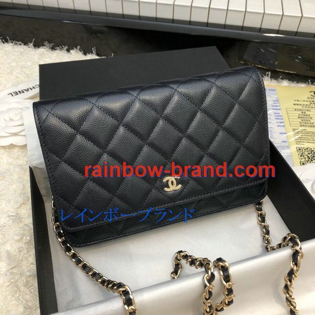 シャネル CHANEL CC-CH33814XQJK 2020年最新入荷 クラシック チェーンウォレット 斜めがけ ショルダーバッグ フラップバッグ キャビアスキン