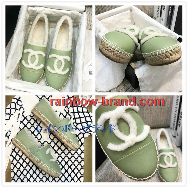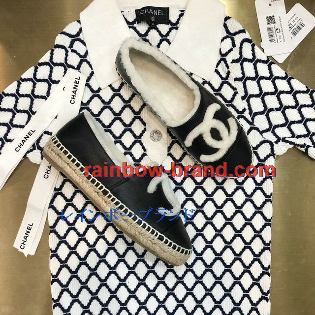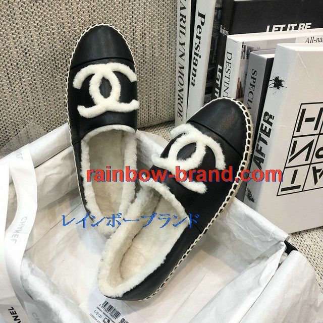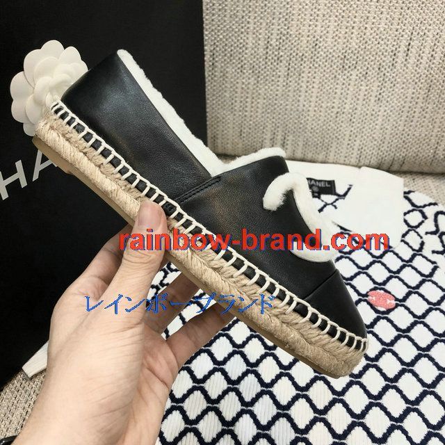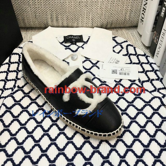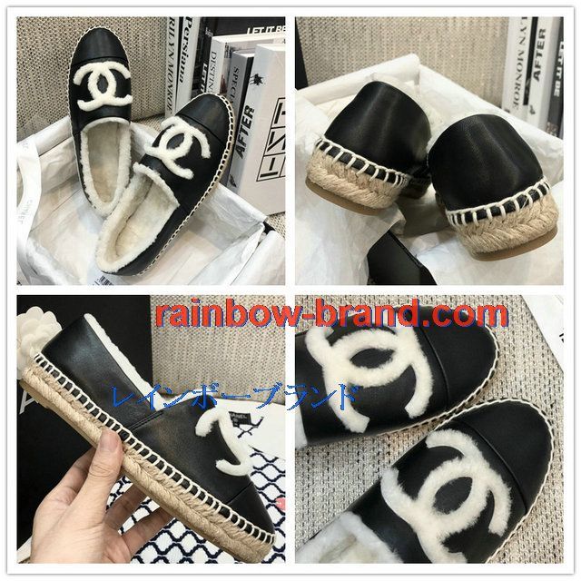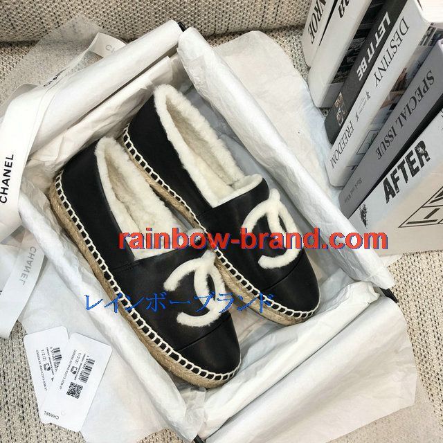 全商品を表示する:シャネル CHANEL 26-CHJ20136 2020年秋冬最新入荷 エスパドリーユ パンプス フラットシューズ 暖かい 冬 ローファーシューズ カジュアルシューズ レザー