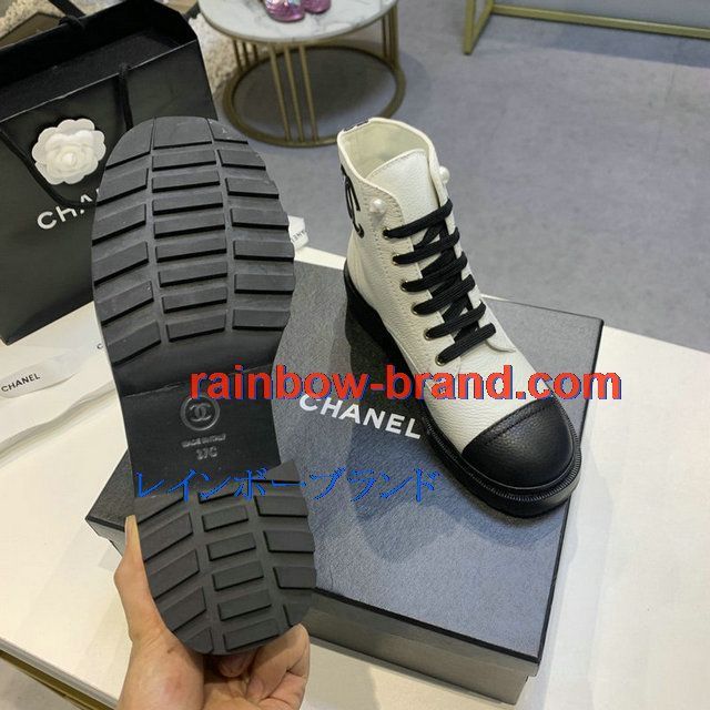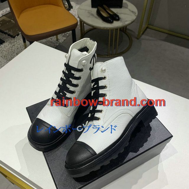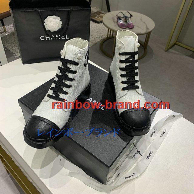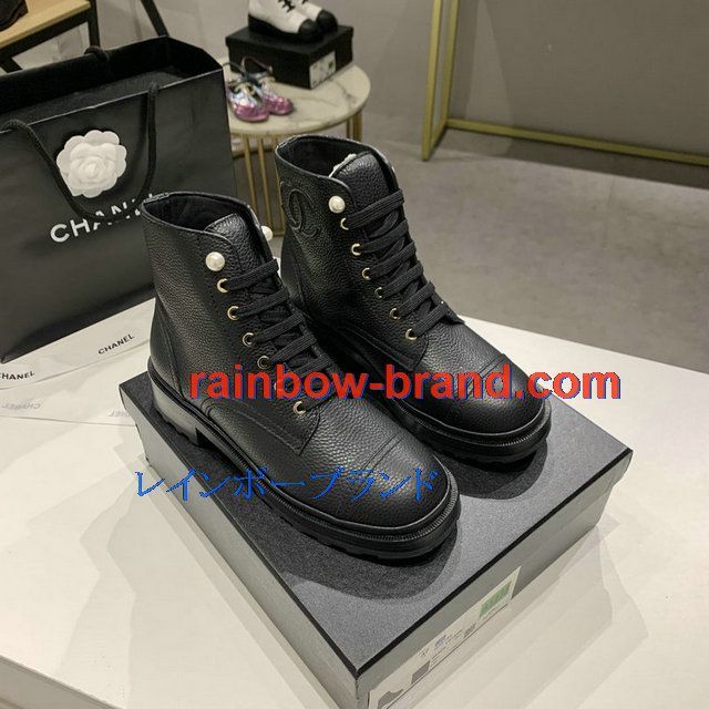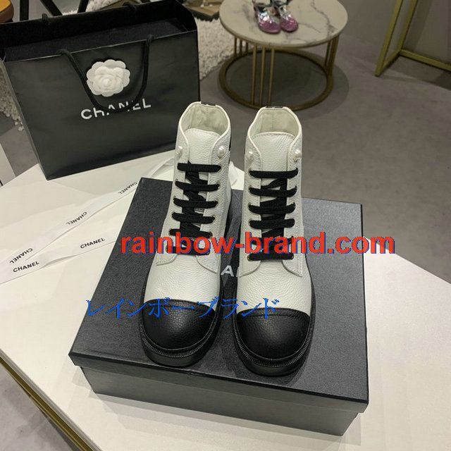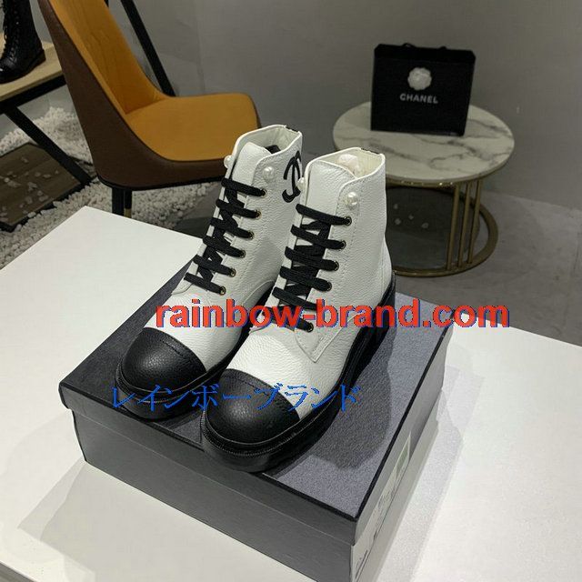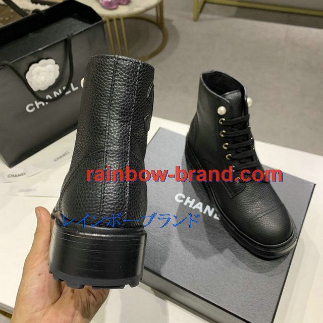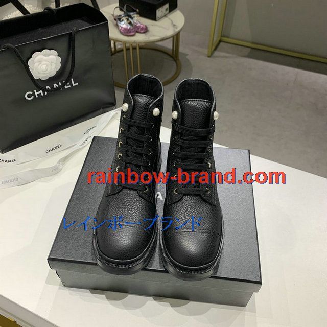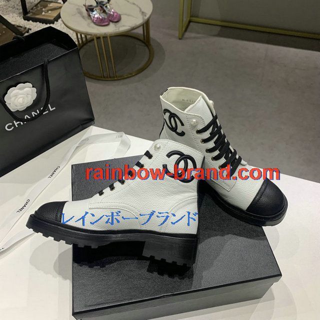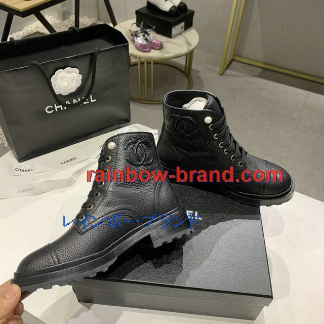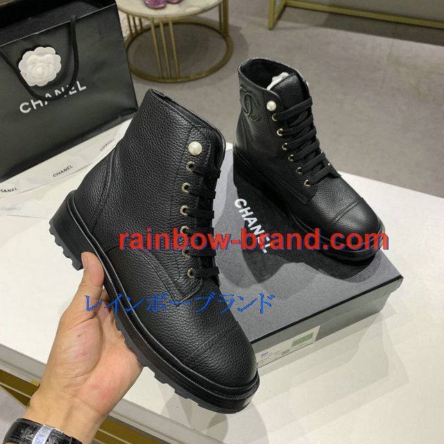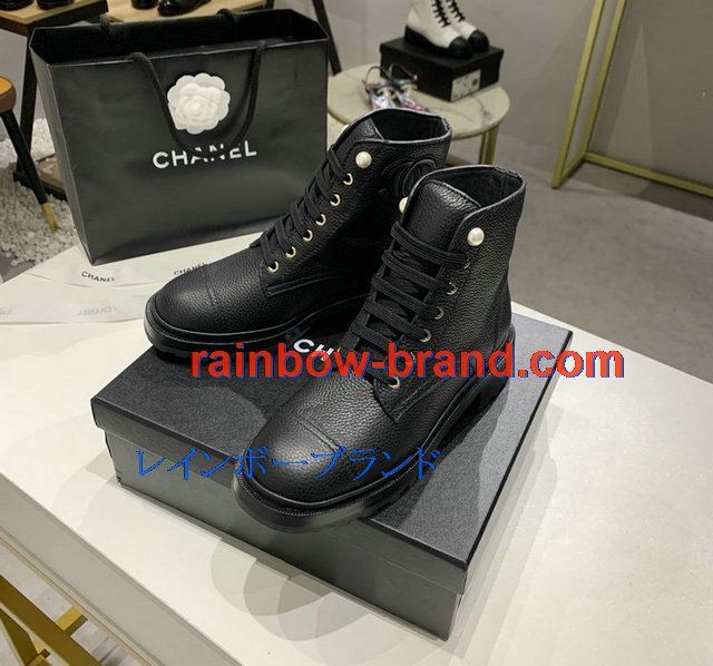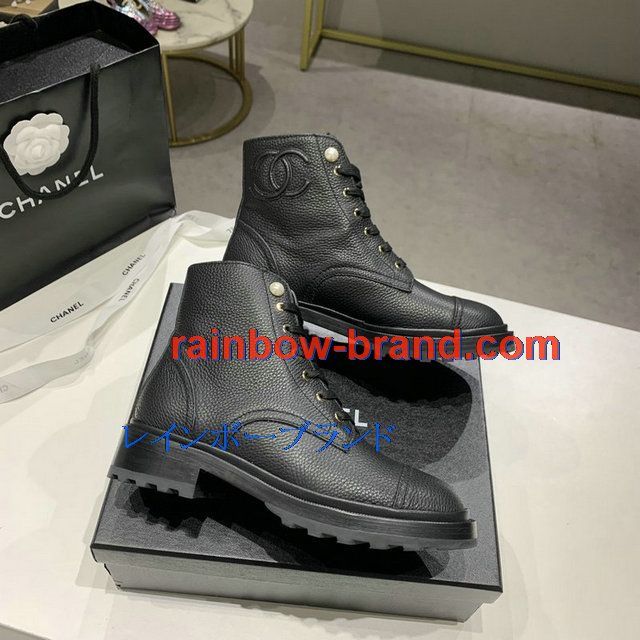 シャネル CHANEL 26-CHJ20145Q 2020年秋冬最新入荷 ショートブーツ レースアップシューズ レディース マーティンブーツ ローヒール 靴