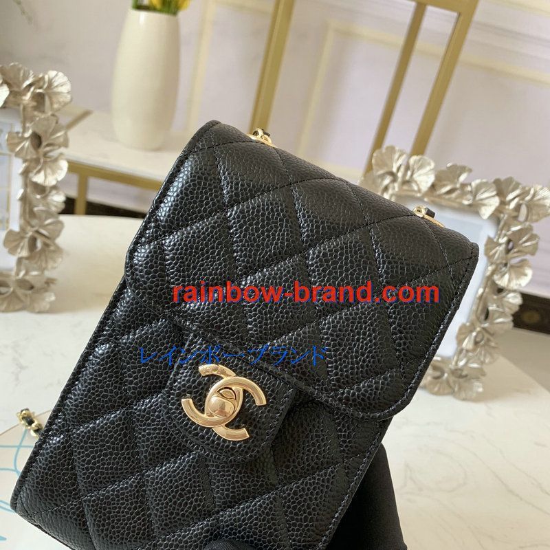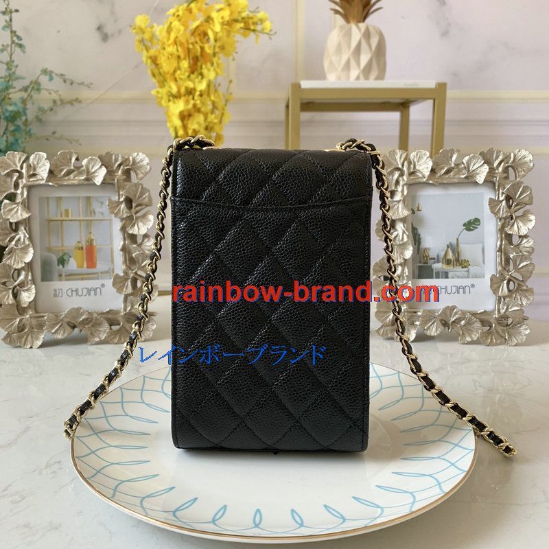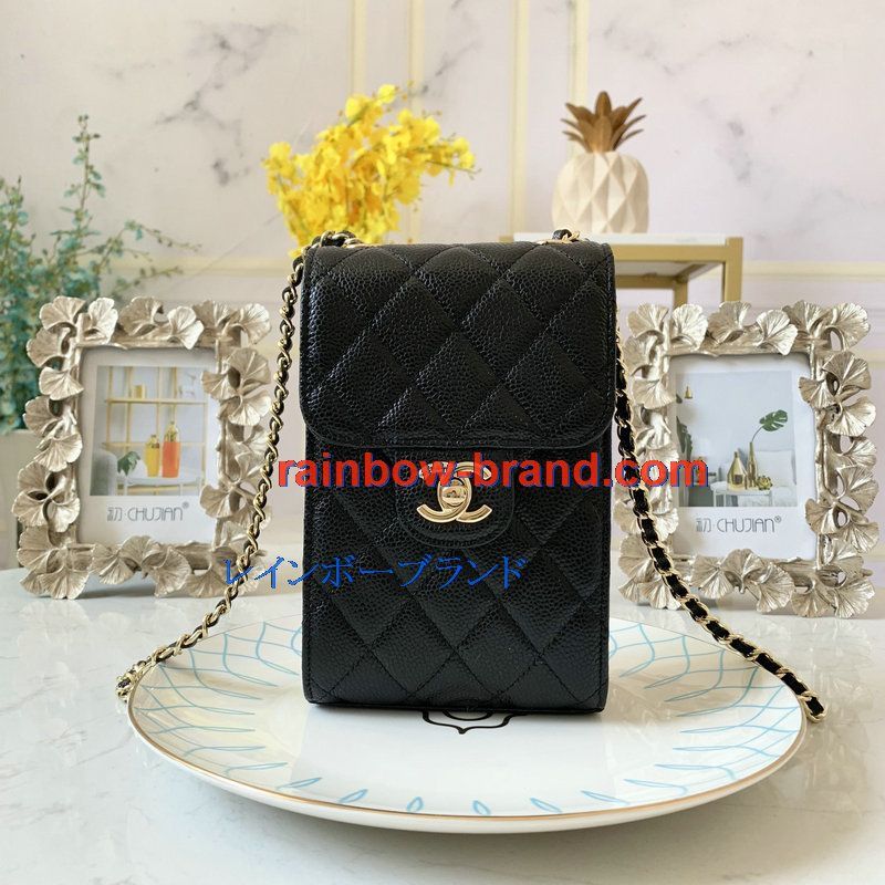 シャンル CHANEL JS-CH0249QK 2020年最新入荷 クラシック チェーンクラッチ 斜め掛け ショルダーバッグ クロスボディ フォンケース 携帯ケース キャビアスキン