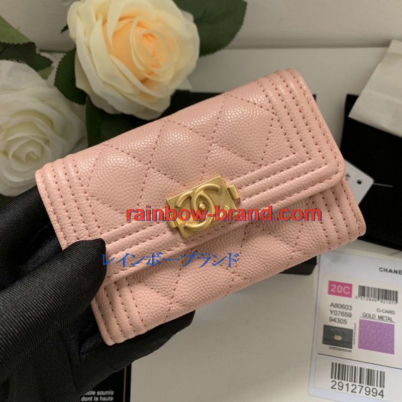 全商品を表示する:シャネル CHANEL JS-CH80603QJF 2020年最新入荷 BOY フラップ カードケース 二つ折り短財布 名刺入れ グレインド カーフスキン