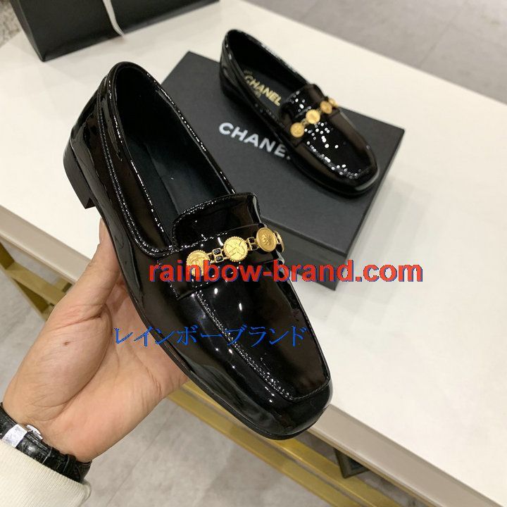 シャネル CHANEL 26-CHJ21002Q 2021年夏最新入荷 ローファー フラットシューズ レディース バレエシューズ パテントレザー