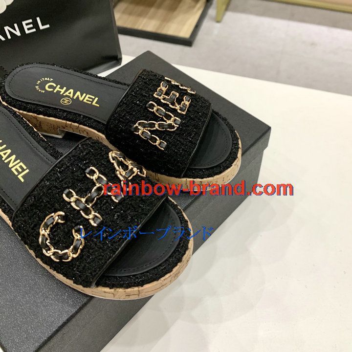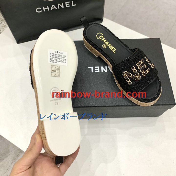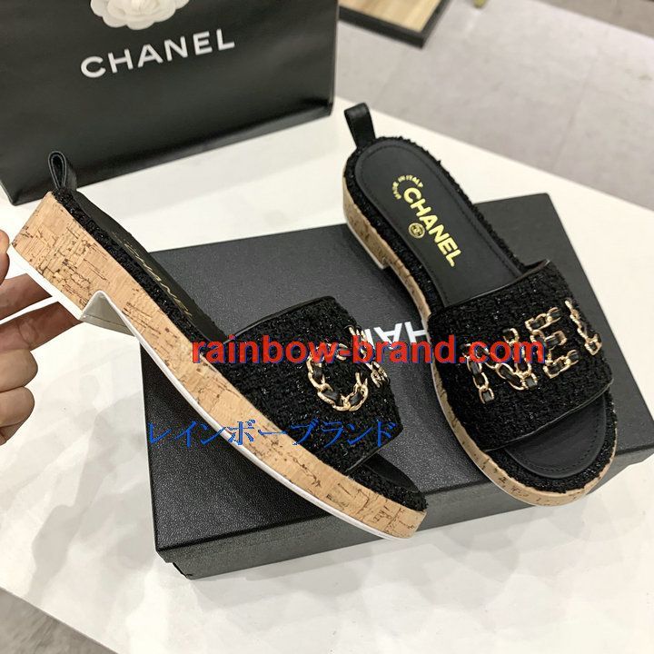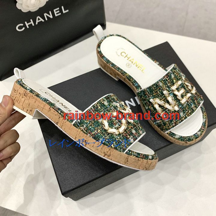 全商品を表示する:シャネル CHANEL 26-CHJ21006 2021年夏最新入荷 ミュール サマーサンダル レディースシューズ 靴 ローヒール スリッパ 厚底
