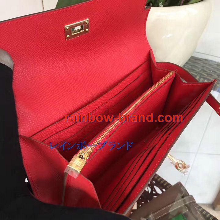 全商品を表示する:エルメス HERMES 063-H708SJRD 2021年最新入荷 ケリーウォレット 手持ちかばん ロングウォレット クラッチバッグ ヴォーエプソン