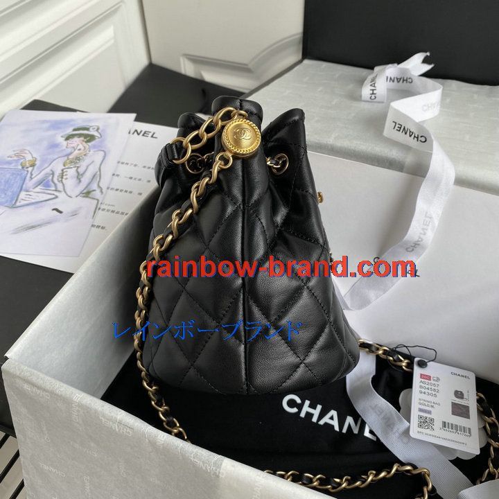 シャネル CHANEL 057-CH2057BK 2021年最新入荷 バゲットバッグ ドローストリングバッグ 斜め掛け ショルダーバッグ クロスボディ ラムスキン
