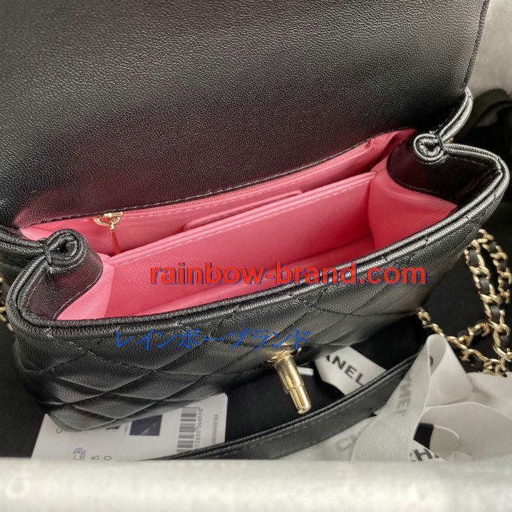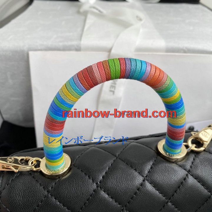 シャネル CHANEL 057-CH2215CJBK 2021年最新入荷 トップハンドル ミニ フラップ バッグ トートバッグ ハンドバッグ 2way ショルダーバッグ クロスボディ ゴートスキン