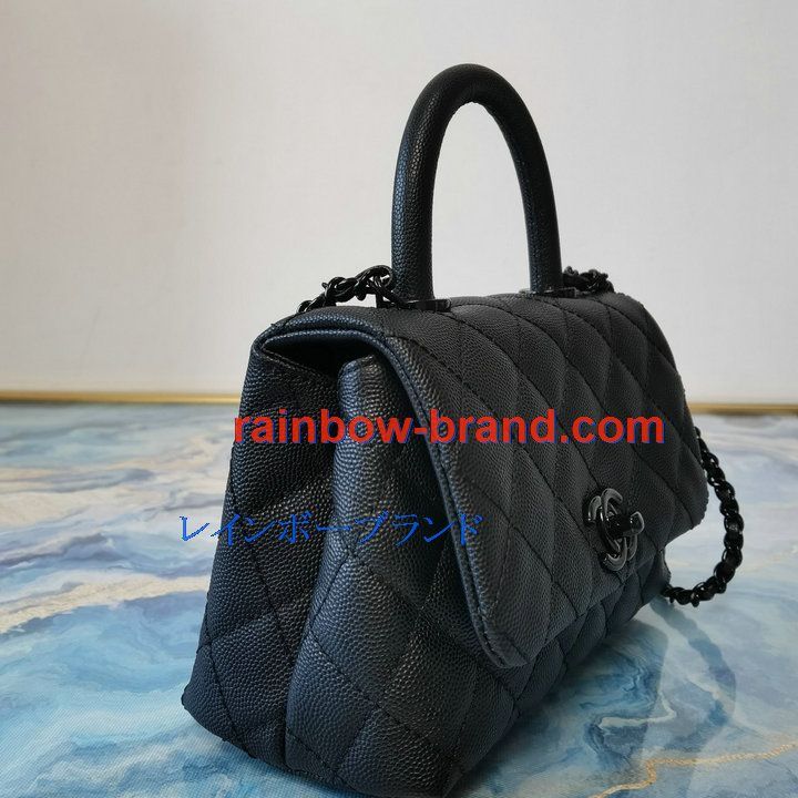 シャネル CHANEL 057-CH2215QQBK 2021年最新入荷 トップハンドル ミニ フラップ バッグ トートバッグ ハンドバッグ 2way ショルダーバッグ クロスボディ キャビアスキン