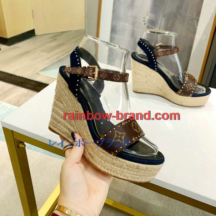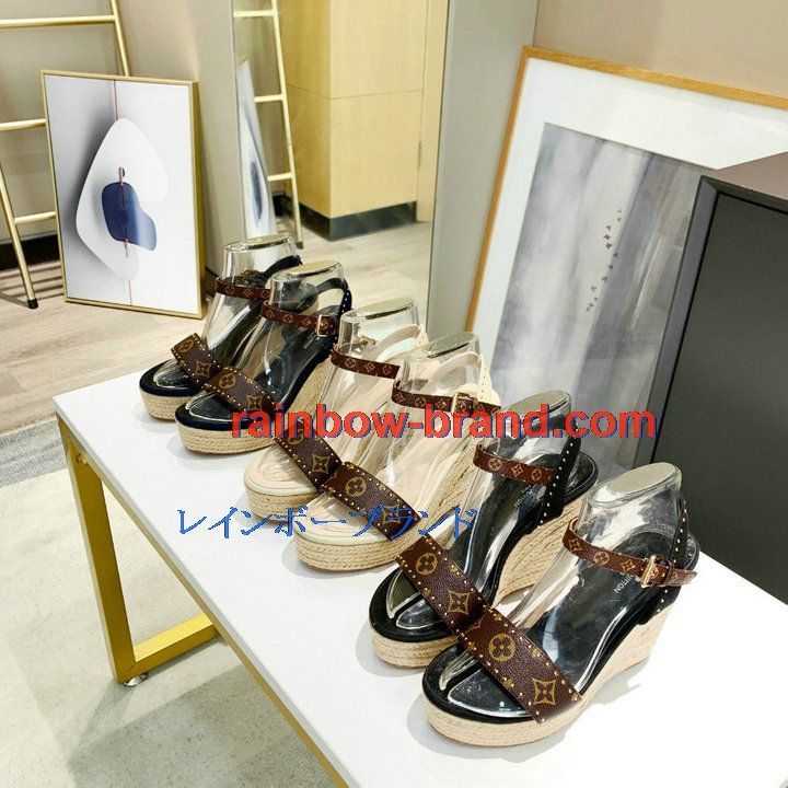 商品名称:ルイヴィトン LOUISVUITTON 26-LVJ210042021年夏最新入荷 コーストライン ライン サンダル ウェッジヒールシューズ レディース ハイヒールシューズ