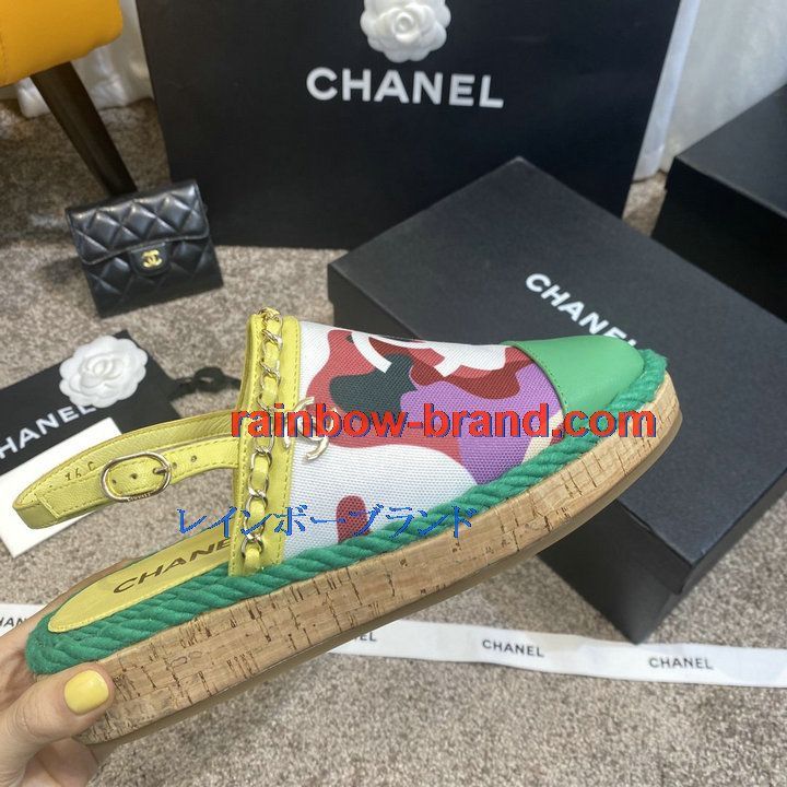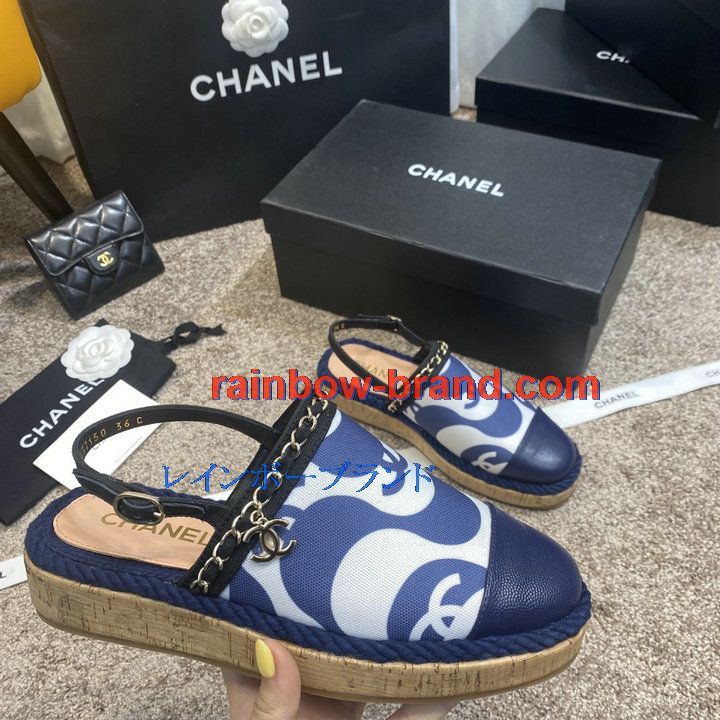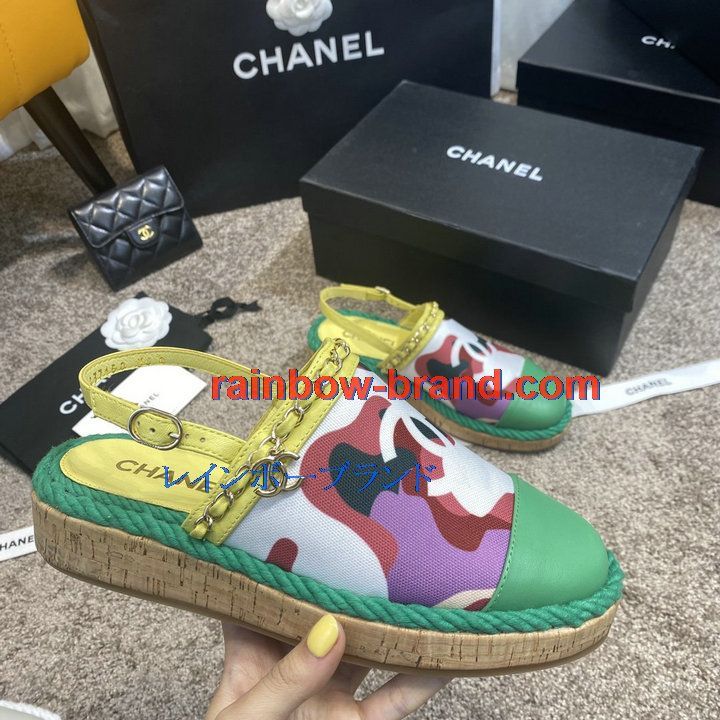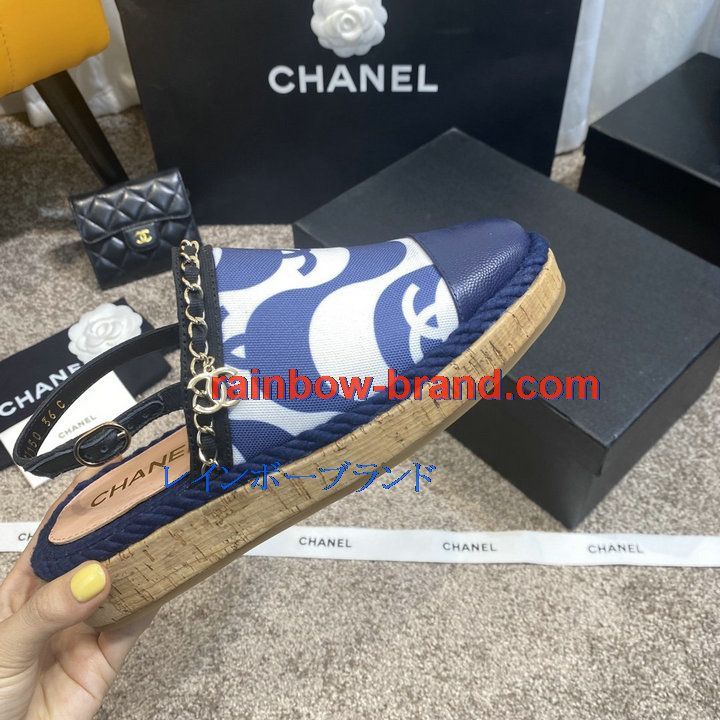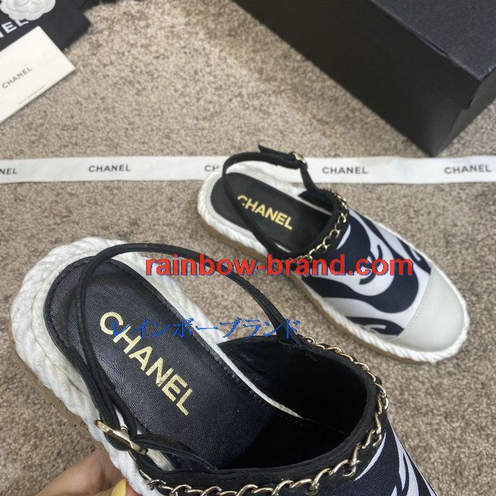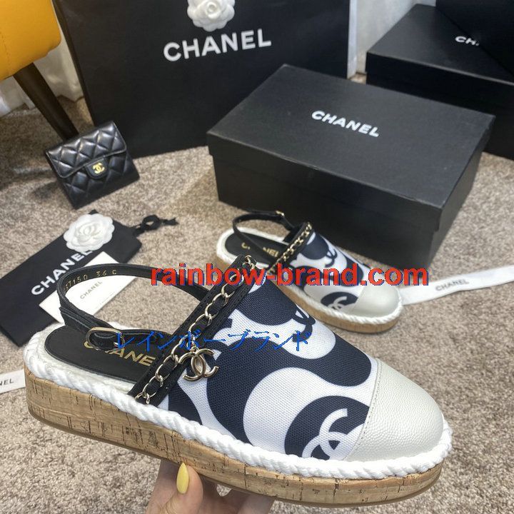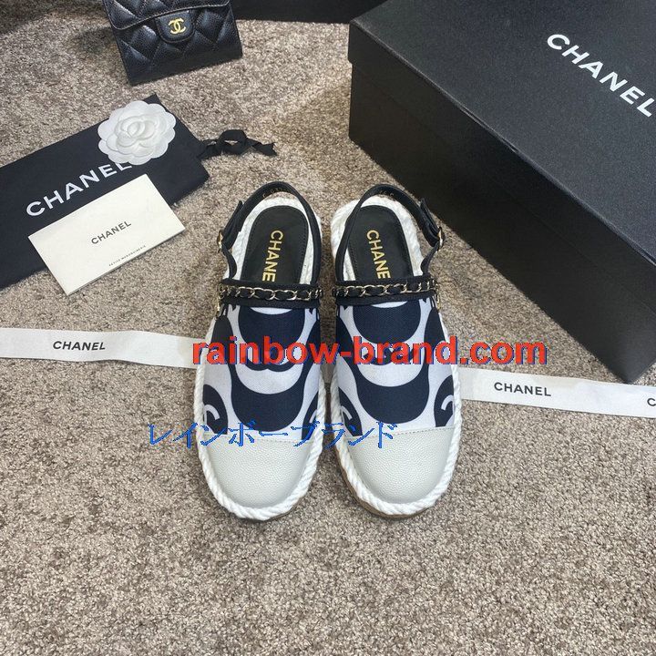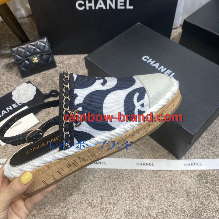 シャネル CHANEL 26-CHJ21031C 2021年夏最新入荷 スリングバック エスパドリーユパンプス ローファー フラットシューズ カジュアルシューズ レディースシューズ 靴