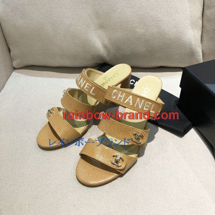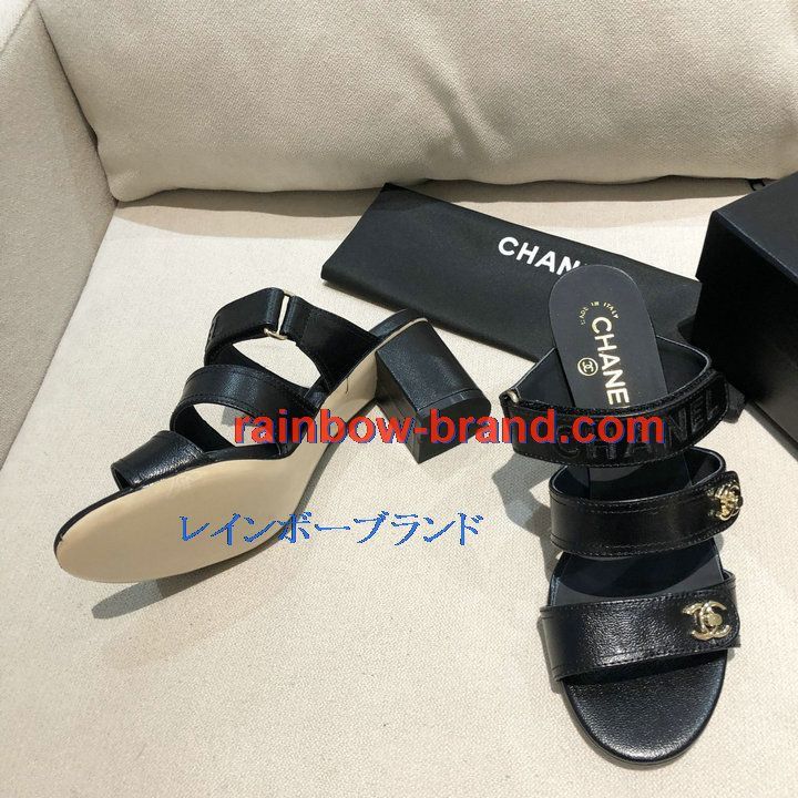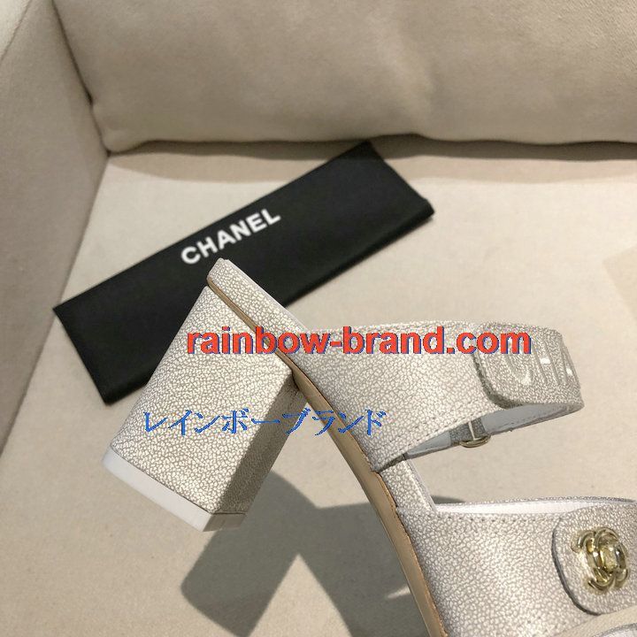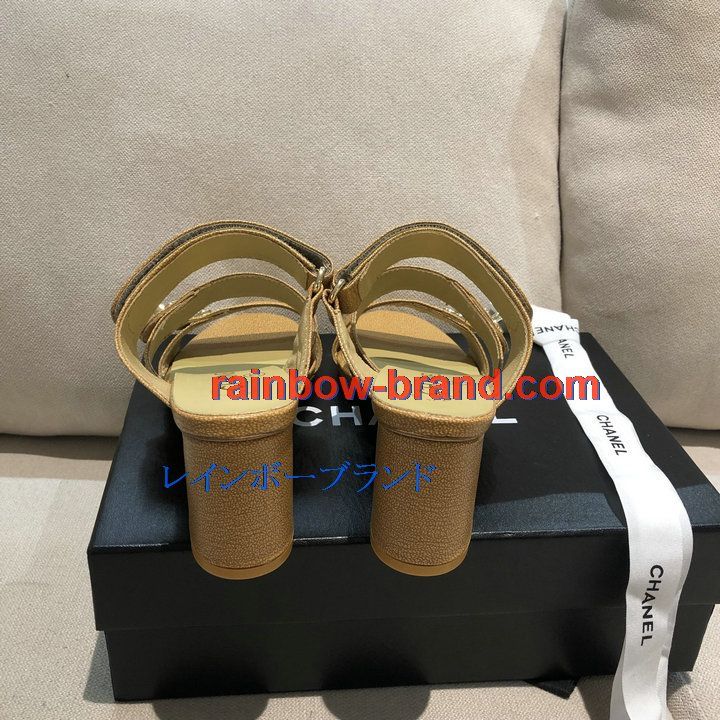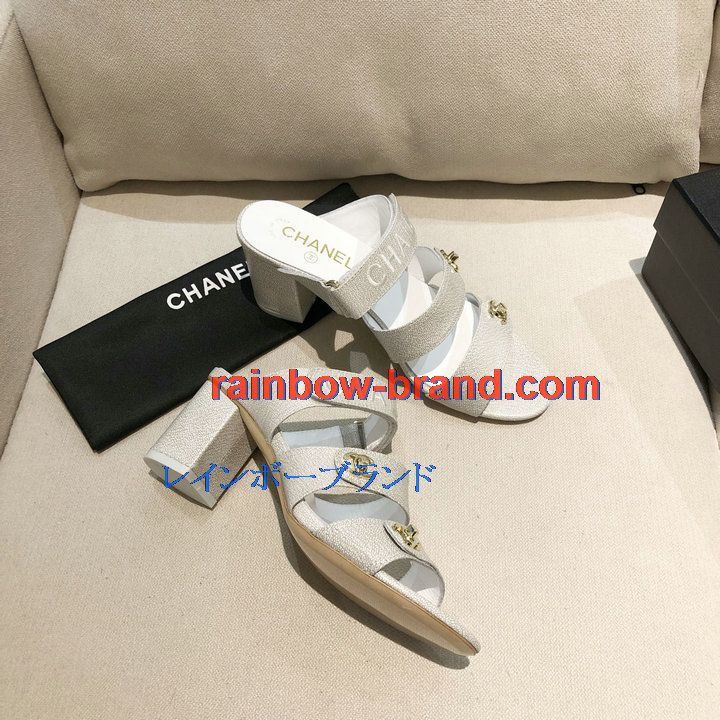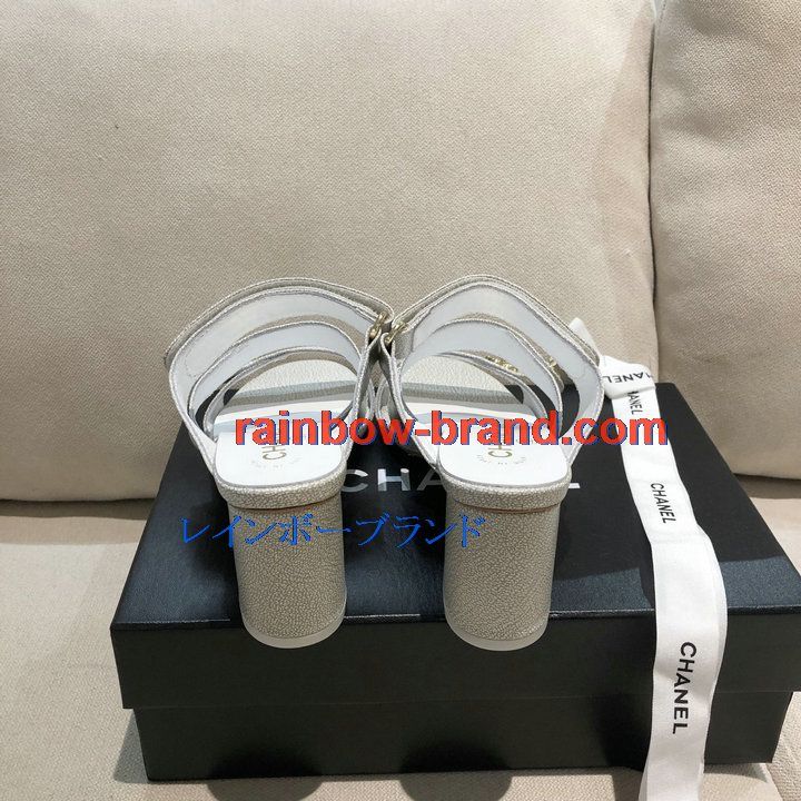 シャネル CHANEL 26-CHJ21033GQ 2021年夏最新入荷 スリングバック ミュール ハイヒールサンダル サマーサンダル 太いかかと カジュアルシューズ レディースシューズ