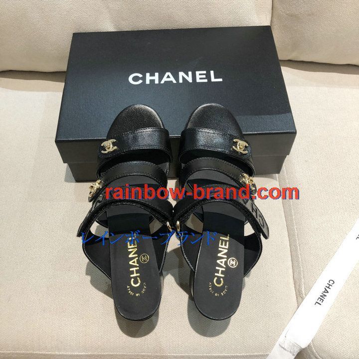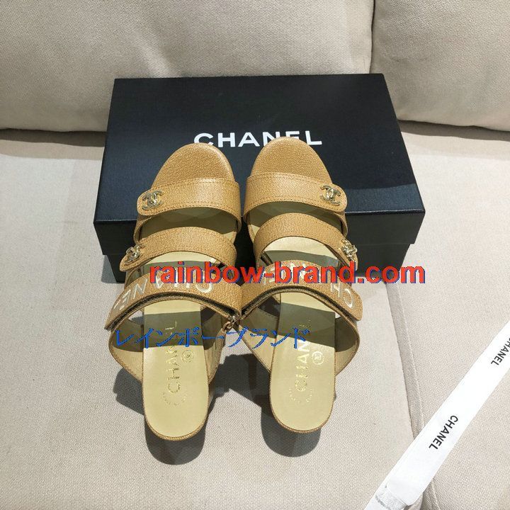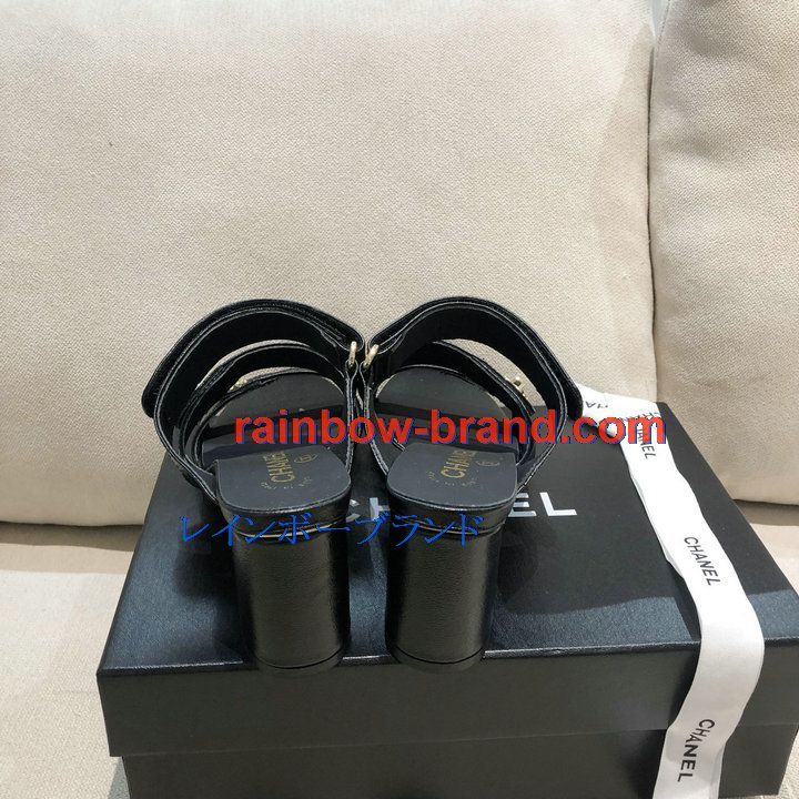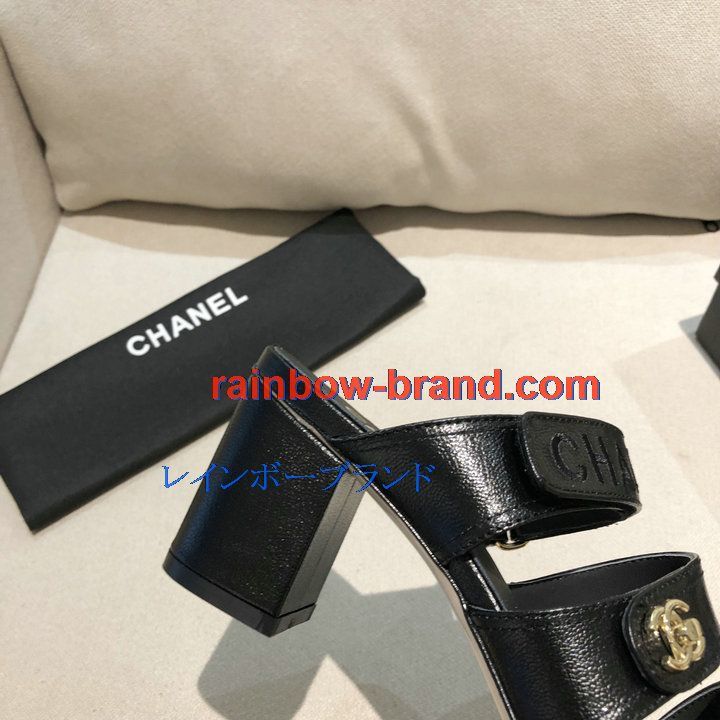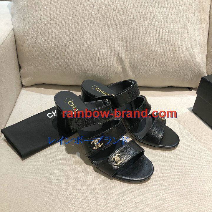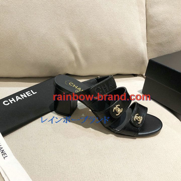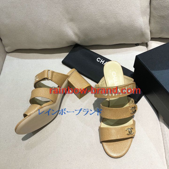 シャネル CHANEL 26-CHJ21033GQ 2021年夏最新入荷 スリングバック ミュール ハイヒールサンダル サマーサンダル 太いかかと カジュアルシューズ レディースシューズ