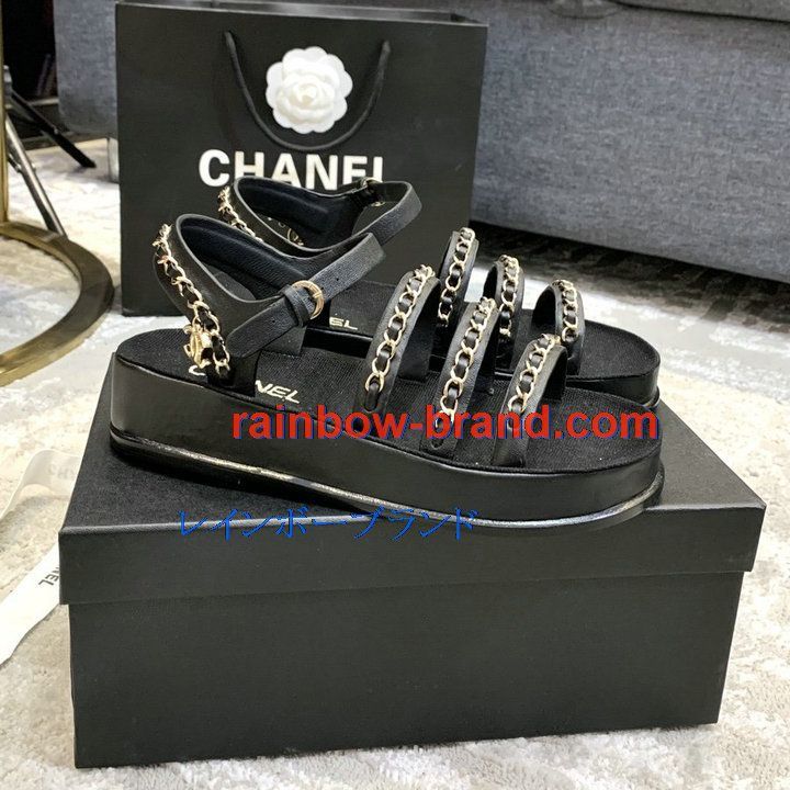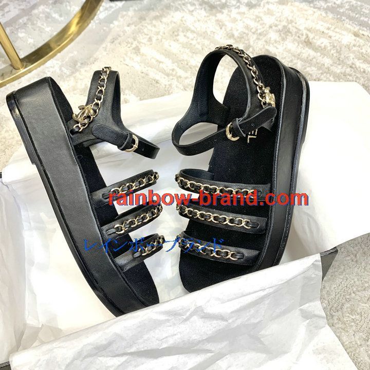シャネル CHANEL 26-CHJ21035 2021年夏最新入荷 スリングバック 厚底サンダル サマーサンダル サンダル レディースシューズ カーフレザー