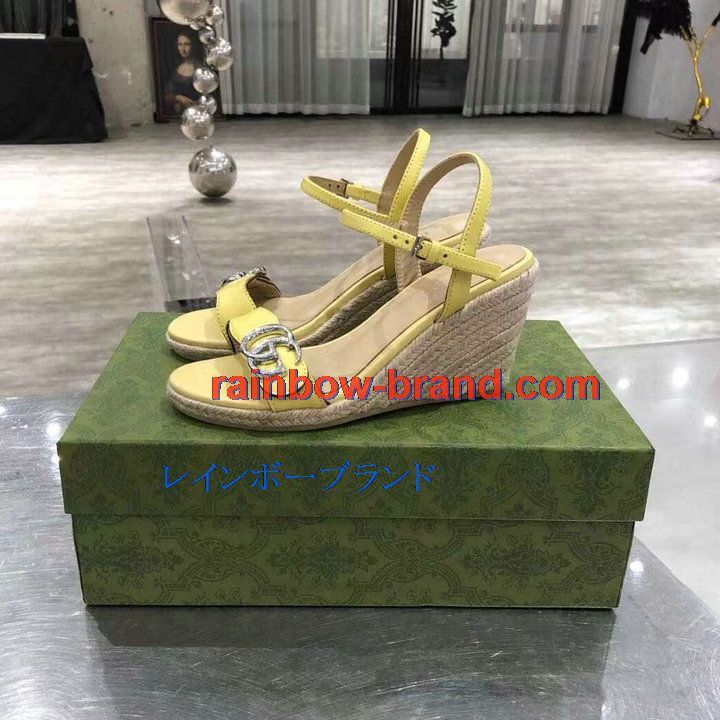 商品名称:グッチ GUCCI 26-GGJ21010YY 2021年夏最新入荷 プラットフォーム エスパドリーユサンダル ウェッジヒール レディースシューズ