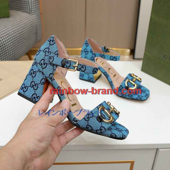 商品名称:グッチ GUCCI 26-GGJ21015BL 2021年夏最新入荷 ホースビット付き サンダル ハイヒールシューズ チャンキーヒール サマーサンダル レディースシューズ