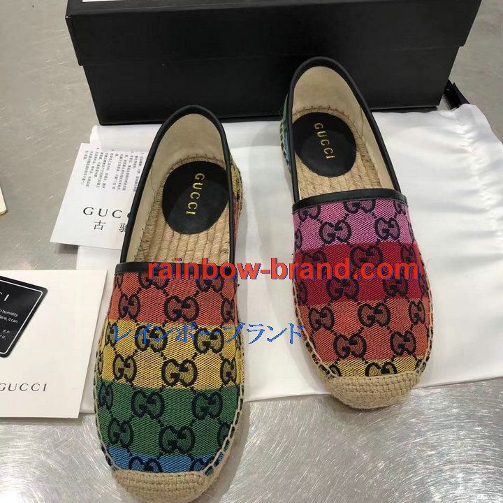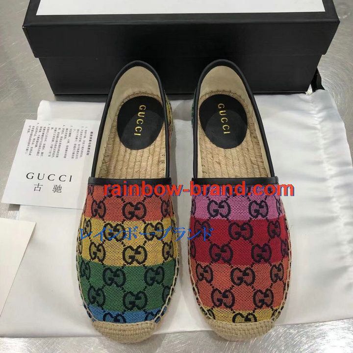 グッチ GUCCI 26-GGJ21018P 2021年夏最新入荷 マルチカラー エスパドリーユシューズ フラットシューズ レディースシューズ