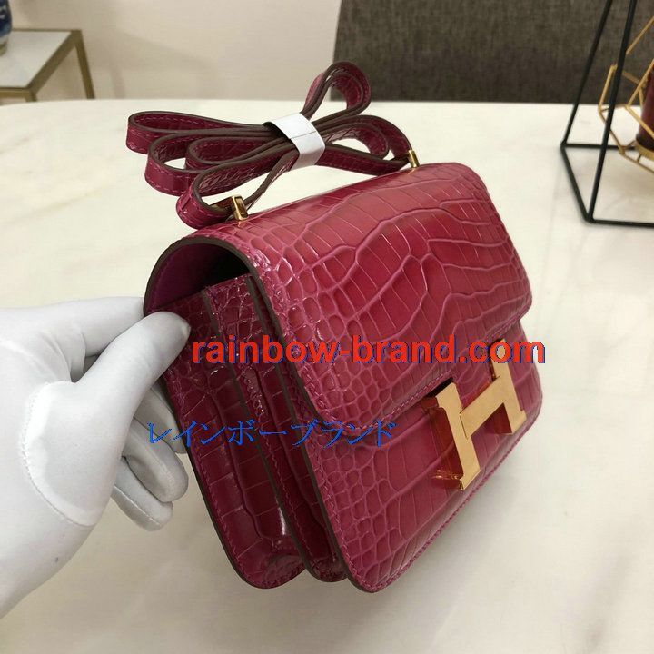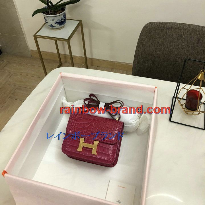エルメス HERMES 3589-H108218EWJZH 2021年最新入荷 コンスタンス 斜め掛け ショルダーバッグ クロスボディバッグ フラップバッグ レディースかばん クロコ柄