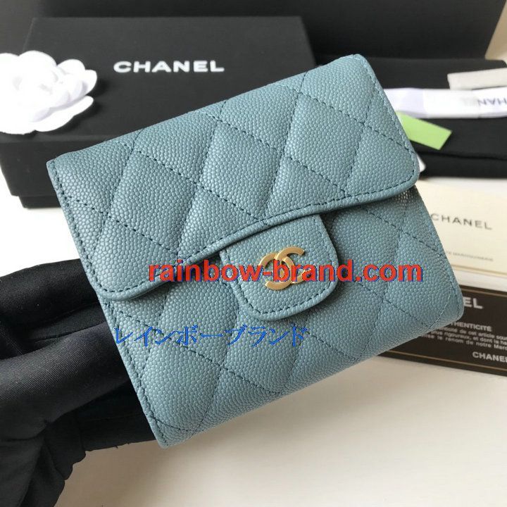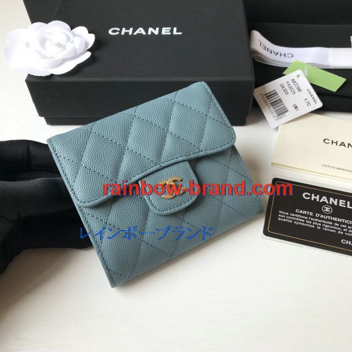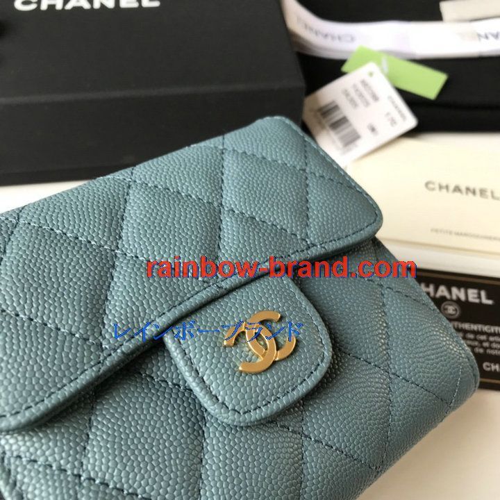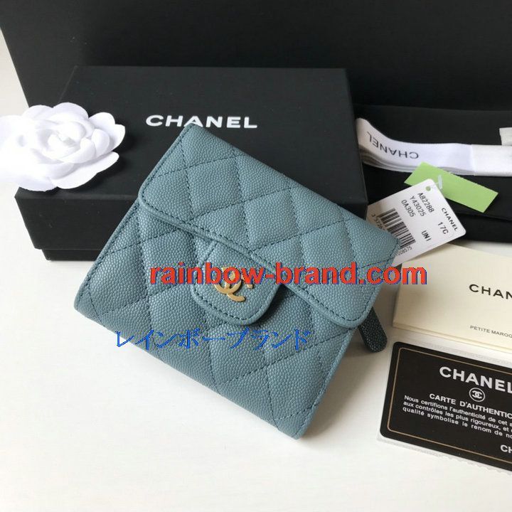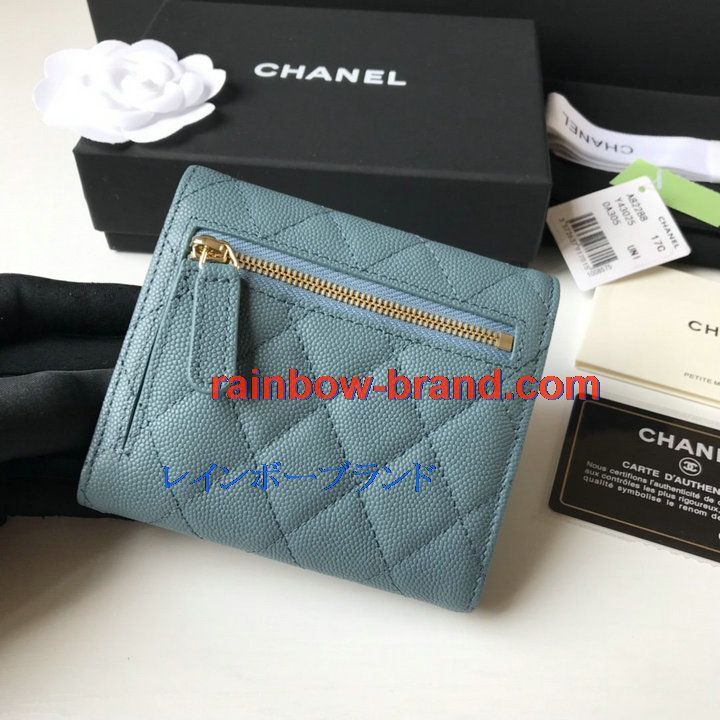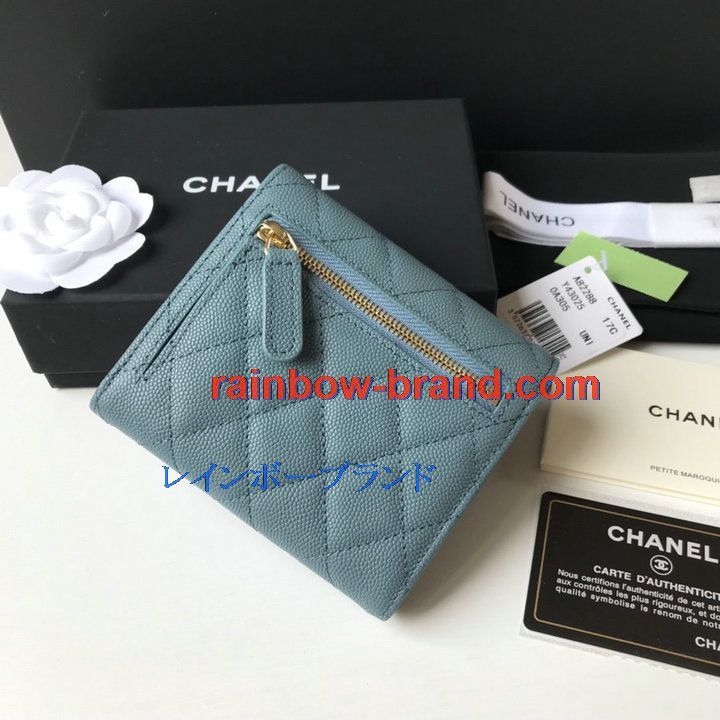 シャネル CHANEL JS-CH82288QJL 2021年最新入荷 三つ折り短財布 キャビアスキン ショートウォレット 小銭入れ