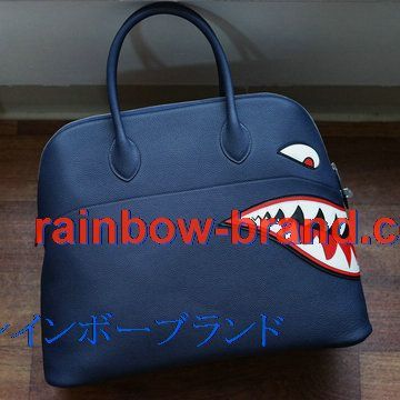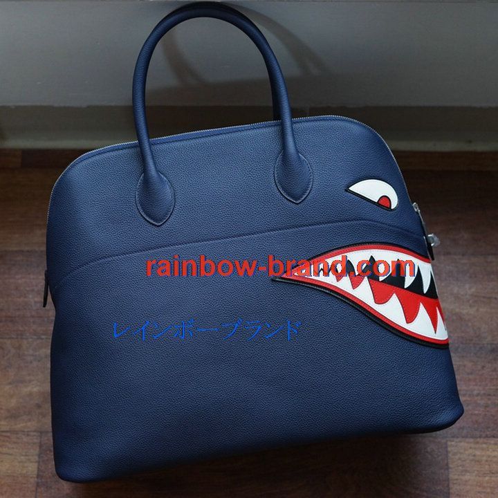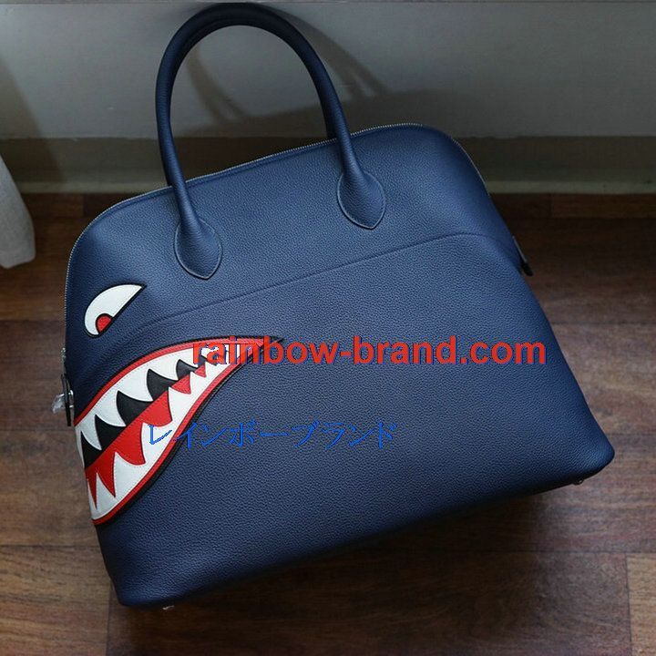 エルメス HERMES 2063-HBL45SSL 021年最新入荷 ボリード シャーク ボーリングバッグ トップハンドルバッグ トートバッグ ハンドバッグ カーフレザー