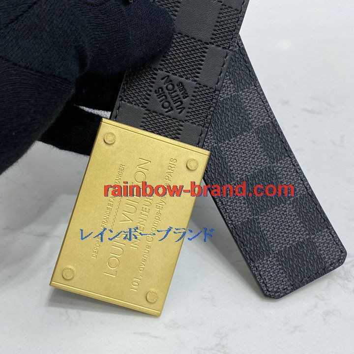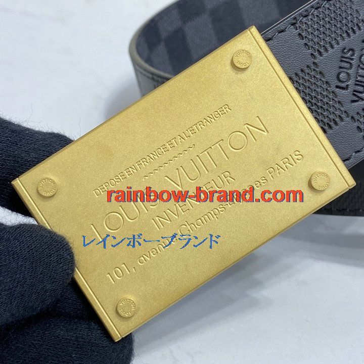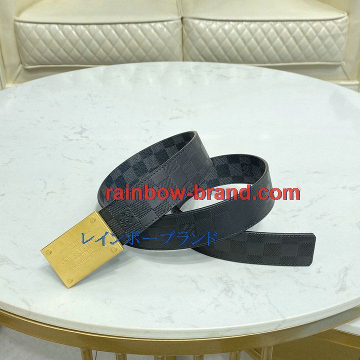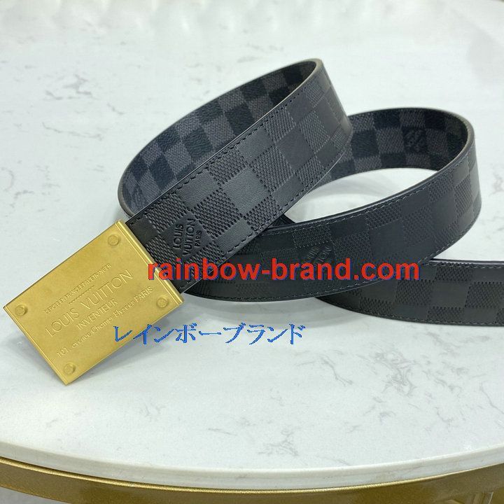 ルイヴィトン LOUISVUITTON 057-M0269TFJ 2021年最新入荷 サンチュール ダミエ プレート 40MM リバーシブル ベルト メンズ用 カーフレザー