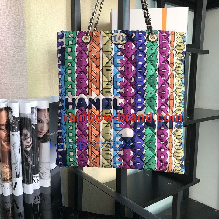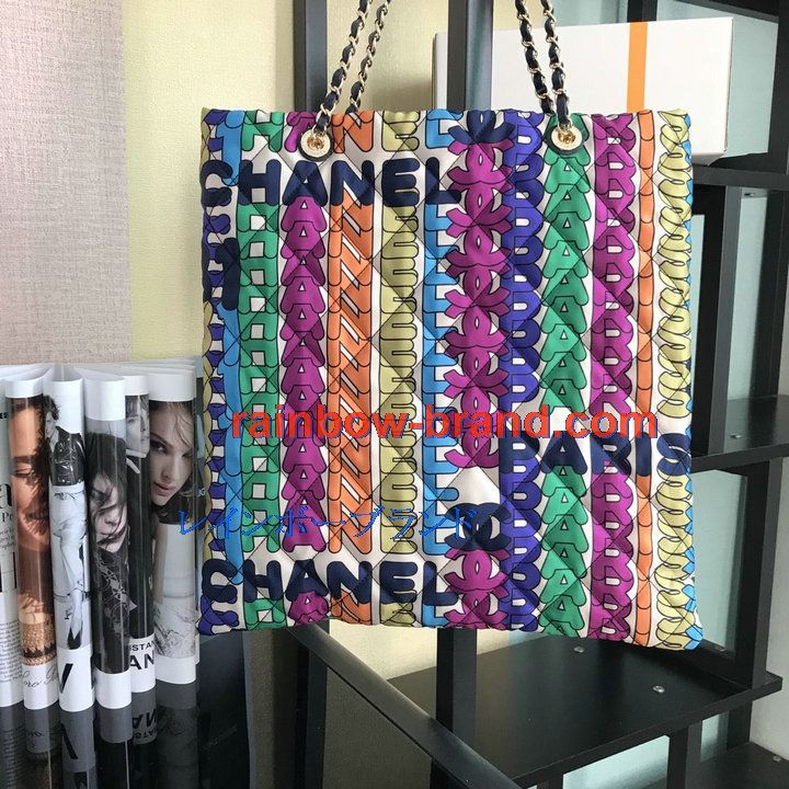 シャネル CHANEL CC-CH2896 2021年最新入荷 ラージ ショッピングバッグ トートバッグ ハンドバッグ 肩掛け ショルダーバッグ プリント ファブリック マルチカラー