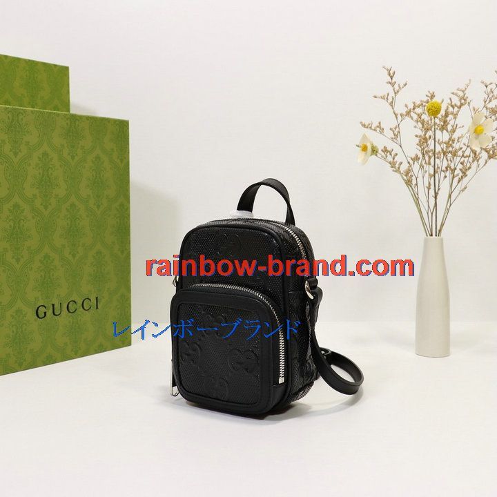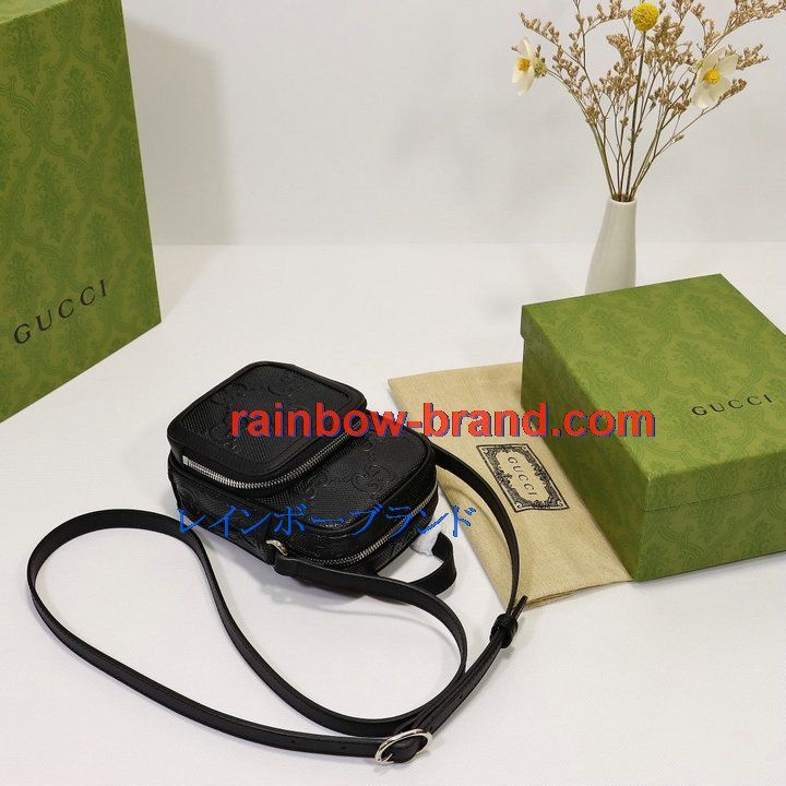 全商品を表示する:グッチ GUCCI 057-GG658553BK 2021年最新入荷 GGエンボス ミニバッグ 斜め掛け ショルダーバッグ クロスボディバッグ キャンパス レザー