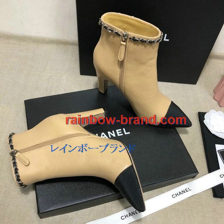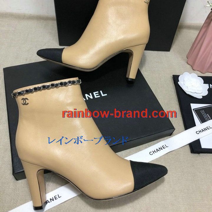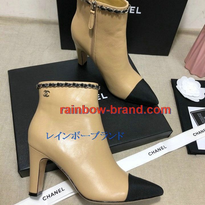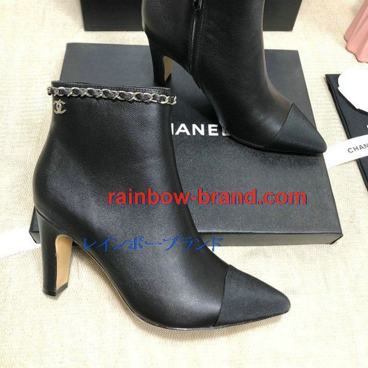 商品名称:シャネル CHANEL 26-CHJ21041GP 2021年秋冬最新入荷 アングルブーツ ハイヒールシューズ ファスナー開閉式 レディースシューズ カーフレザー