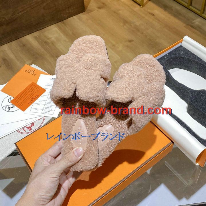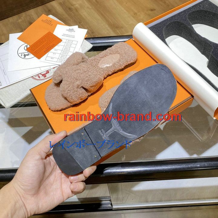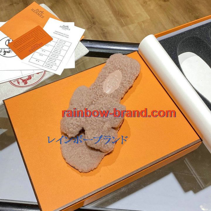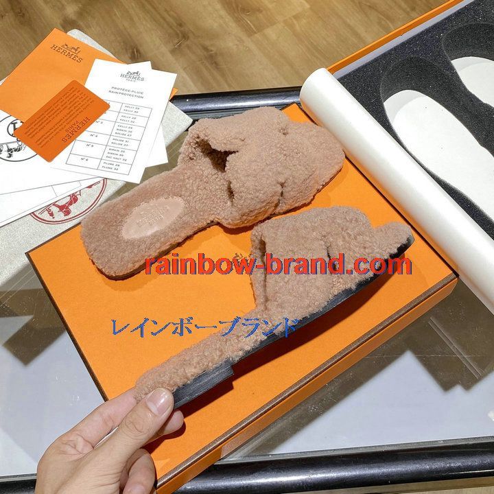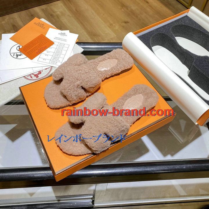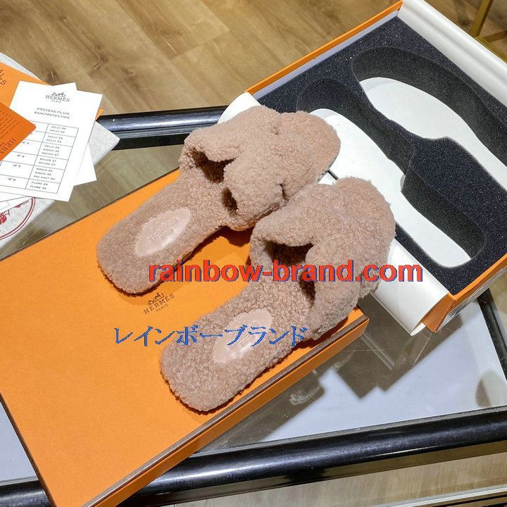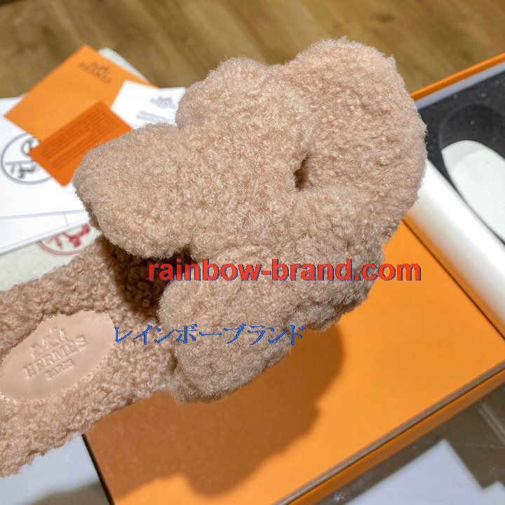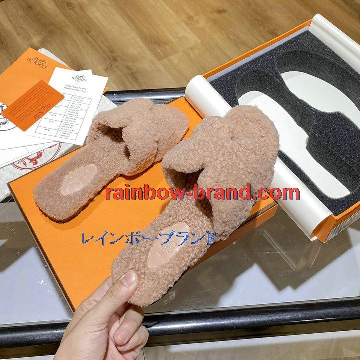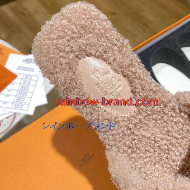 商品名称:エルメス HERMES 26-HEJ21009F 2021年秋冬最新入荷 テディ オラン ミュール ウール サンダル 暖かい レディース スリッパ カーフレザー