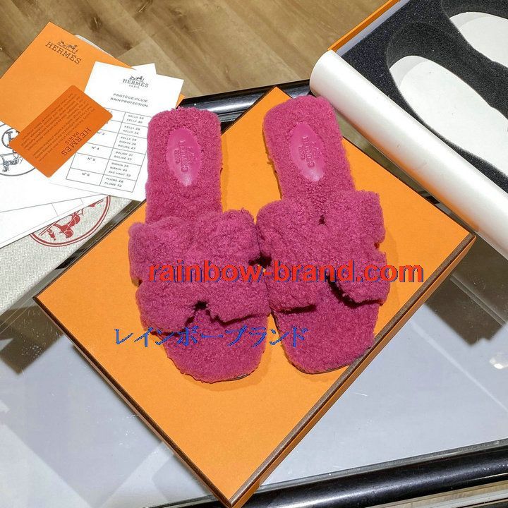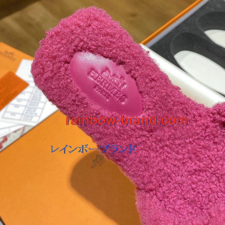 商品名称:エルメス HERMES 26-HEJ21009M 2021年秋冬最新入荷 テディ オラン ミュール ウール サンダル 暖かい レディース スリッパ カーフレザー
