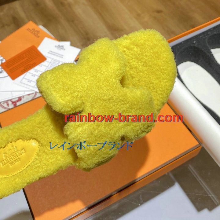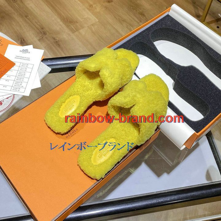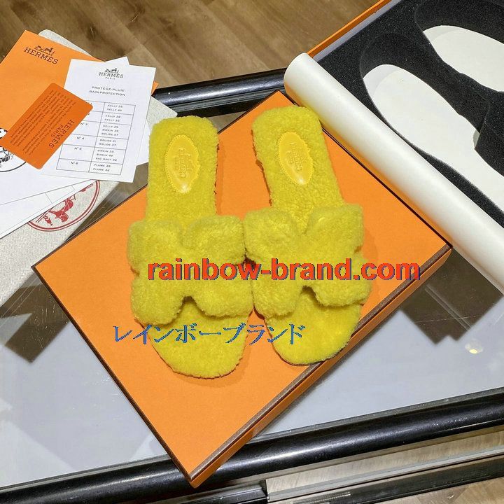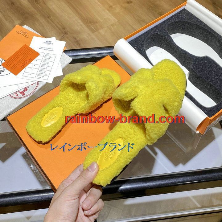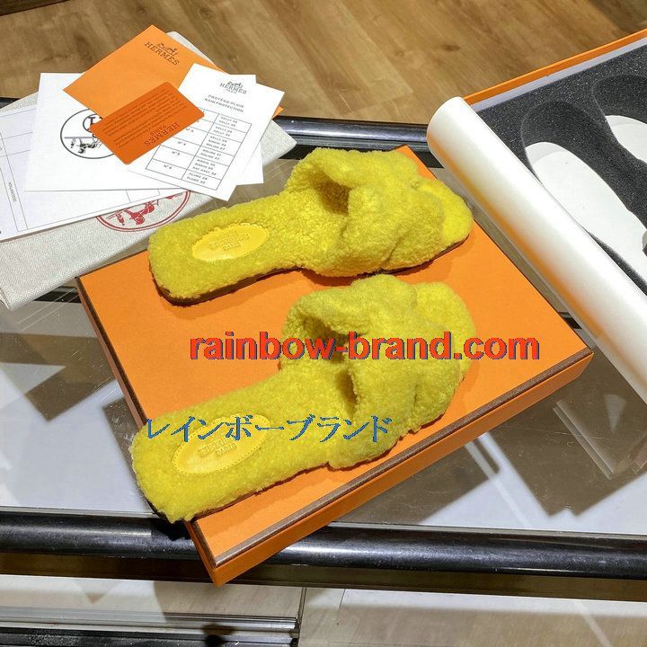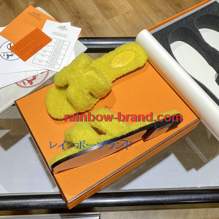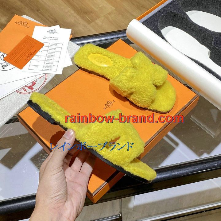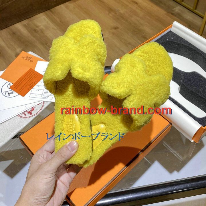 全商品を表示する:エルメス HERMES 26-HEJ21009Y 2021年秋冬最新入荷 テディ オラン ミュール ウール サンダル 暖かい レディース スリッパ カーフレザー