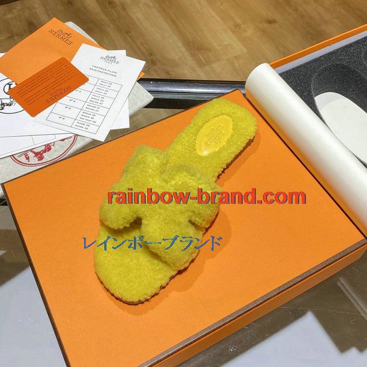 エルメス HERMES 26-HEJ21009Y 2021年秋冬最新入荷 テディ オラン ミュール ウール サンダル 暖かい レディース スリッパ カーフレザー