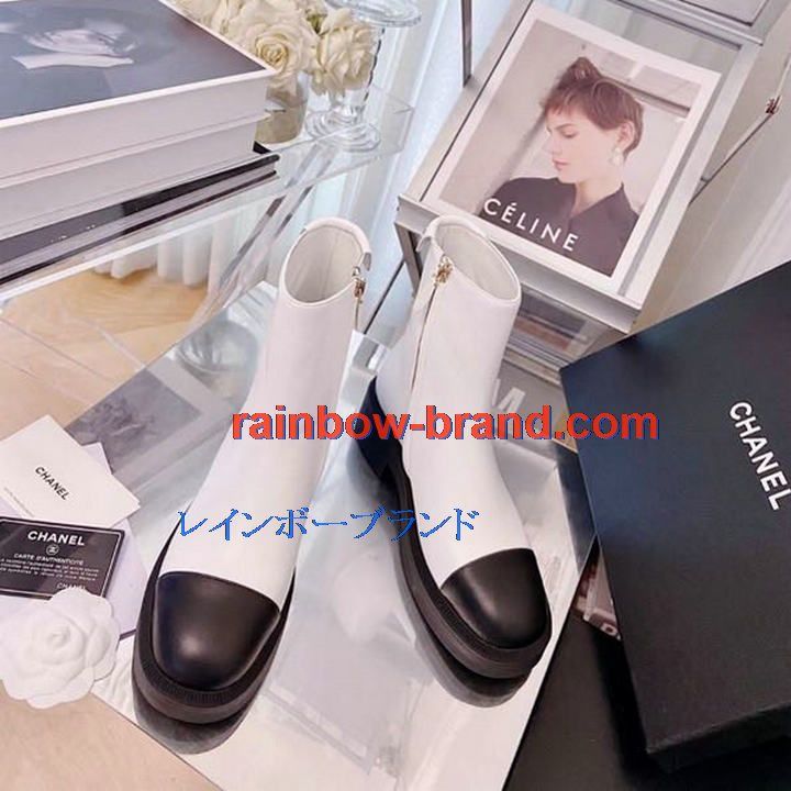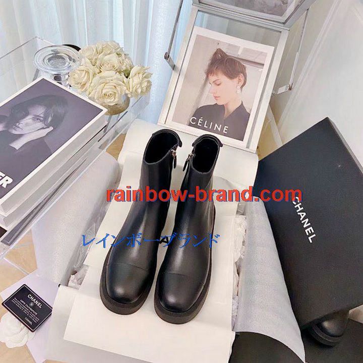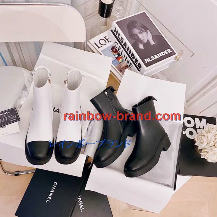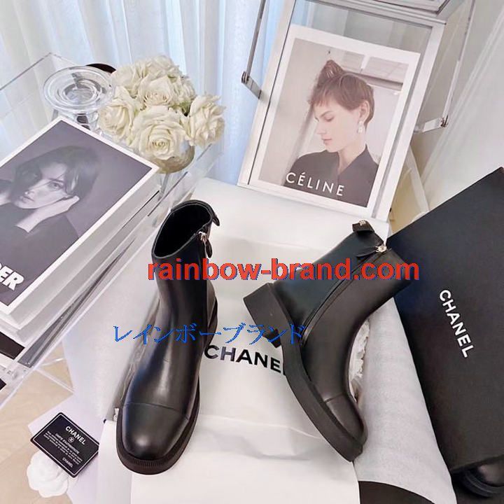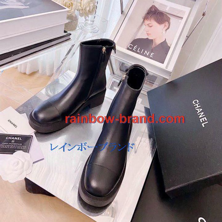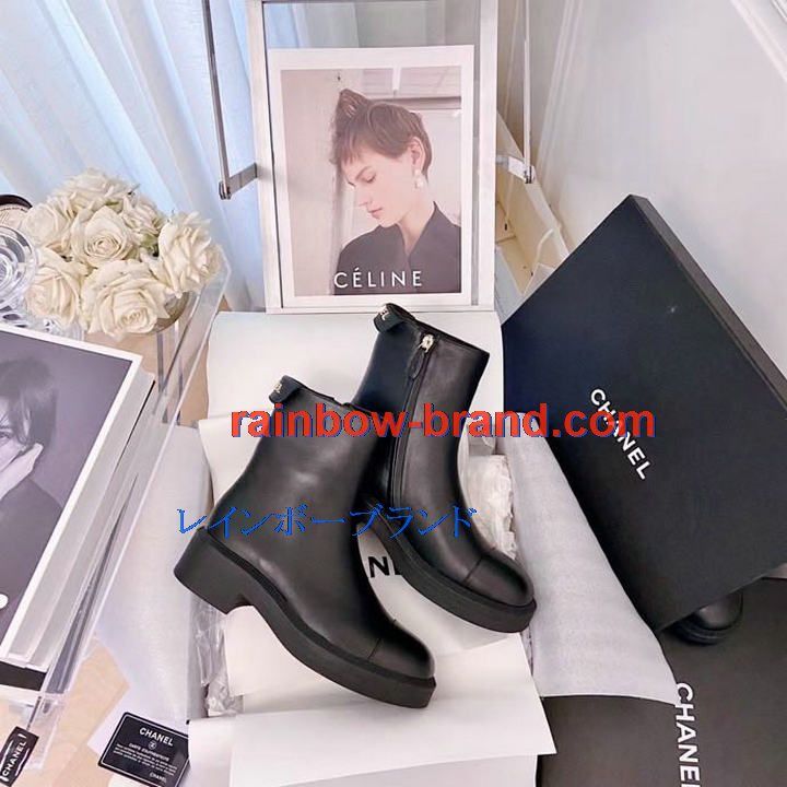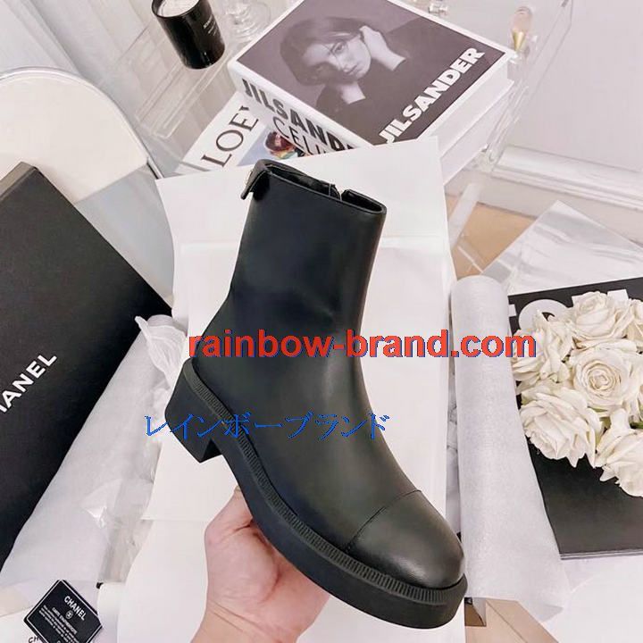 シャネル CHANEL 26-CHJ21066 2021年秋冬最新入荷 ショートブーツ ローヒールシューズ ファスナー開閉式 レディースシューズ カジュアルシューズ カーフレザー