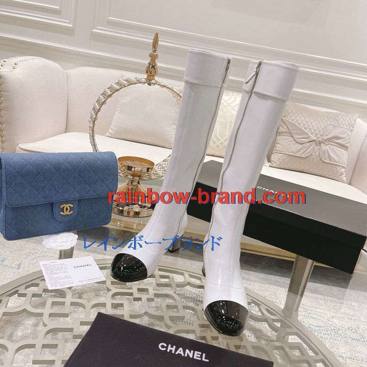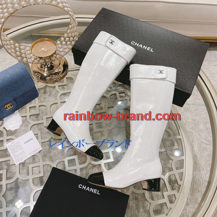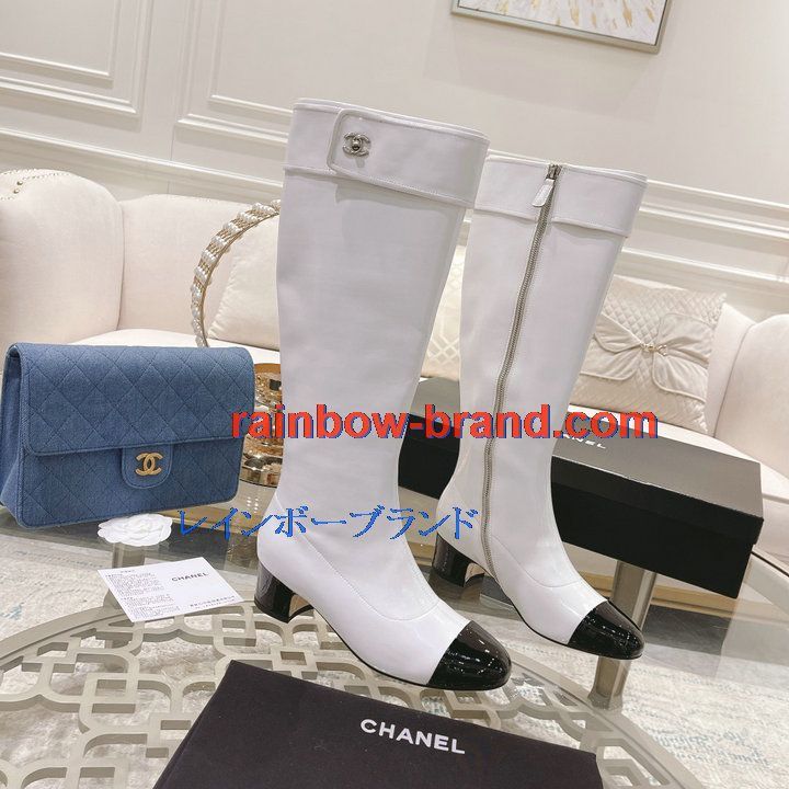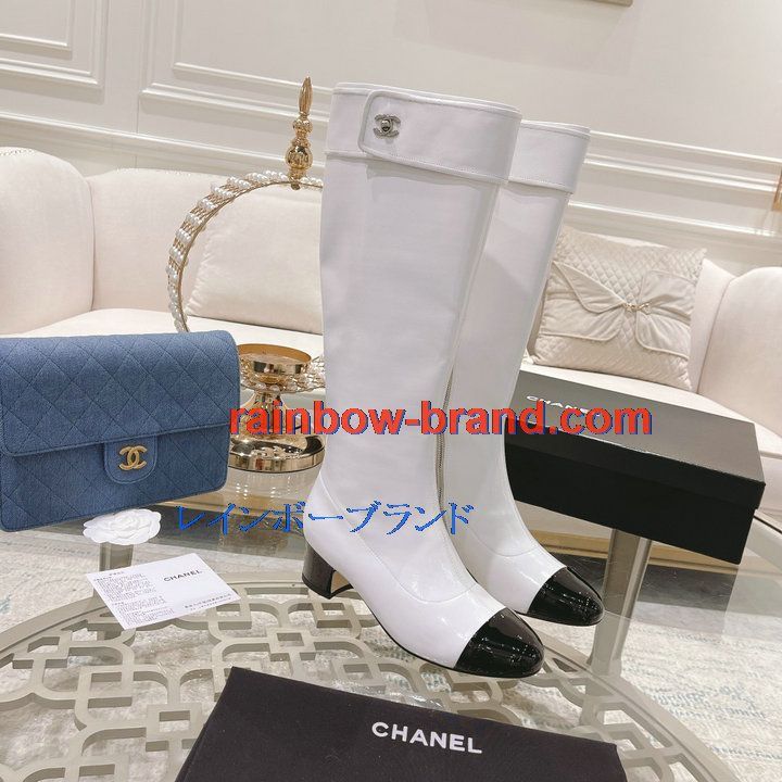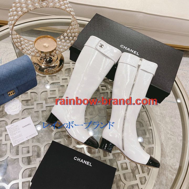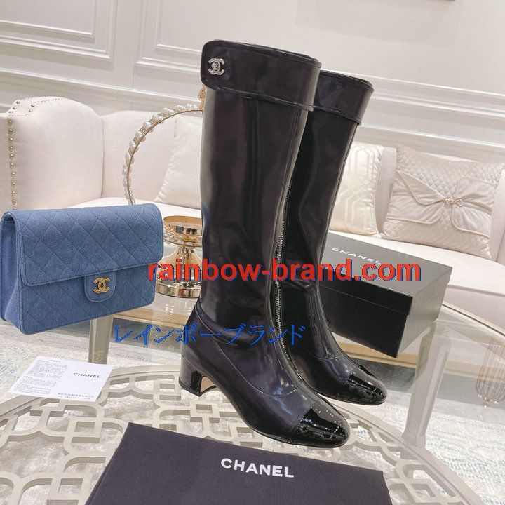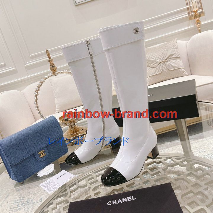 全商品を表示する:シャネル CHANEL 26-CHJ21075Q 2021年秋冬最新入荷 ロングブーツ ローヒールシューズ ファスナー開閉式 レディースシューズ カジュアルシューズ 靴 パテントレザー