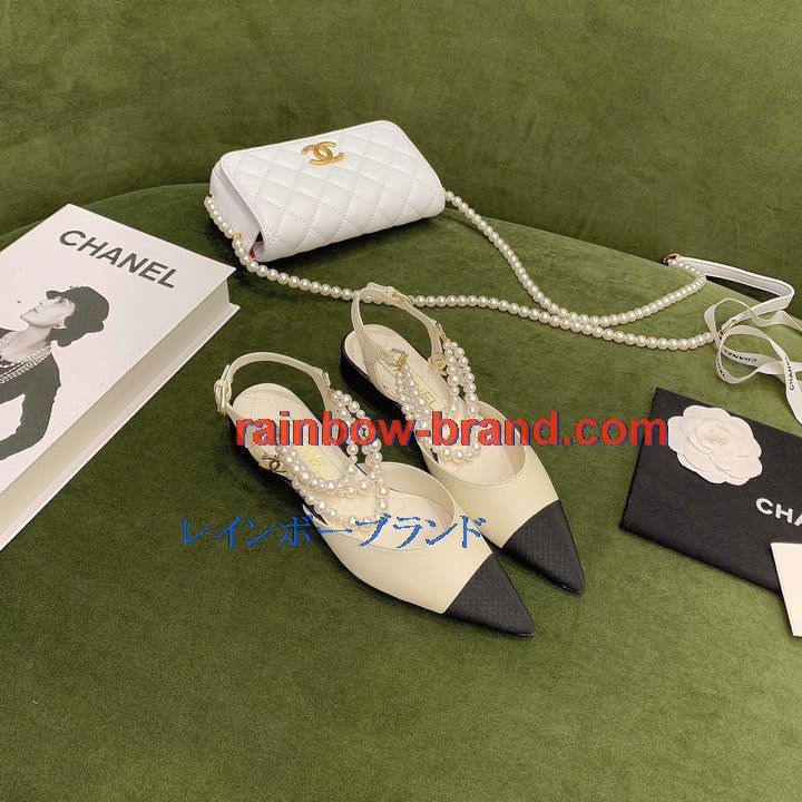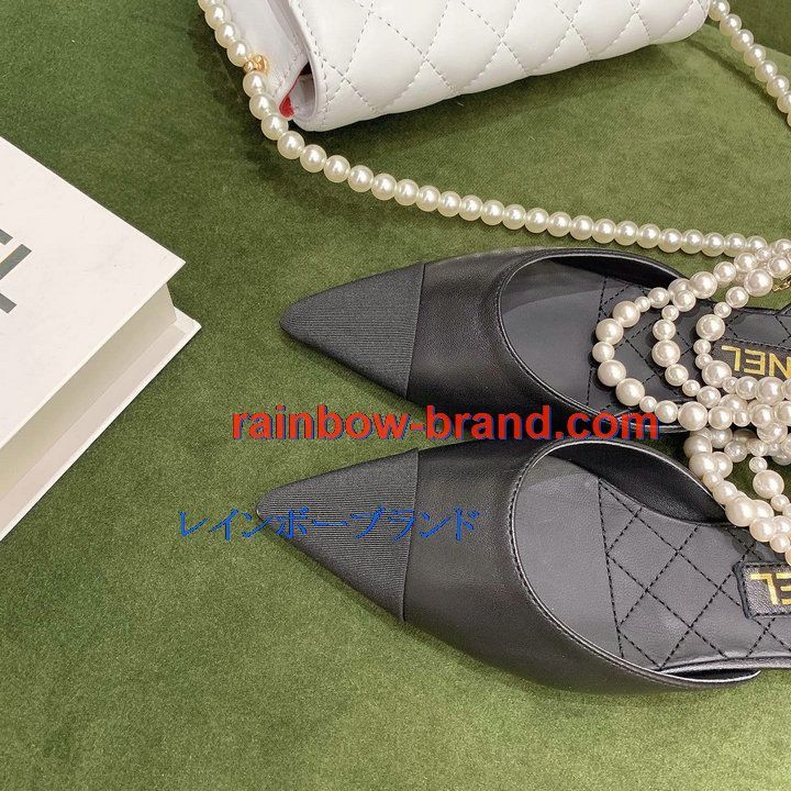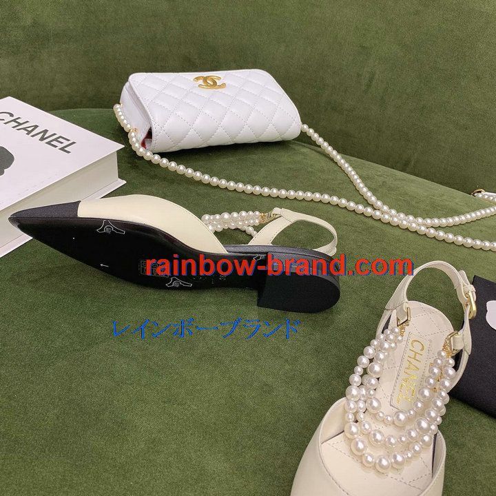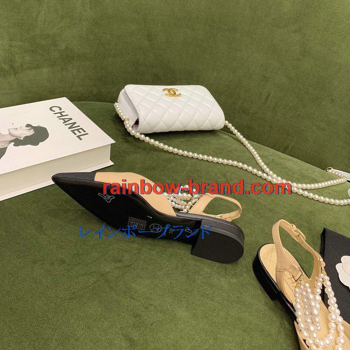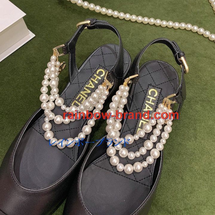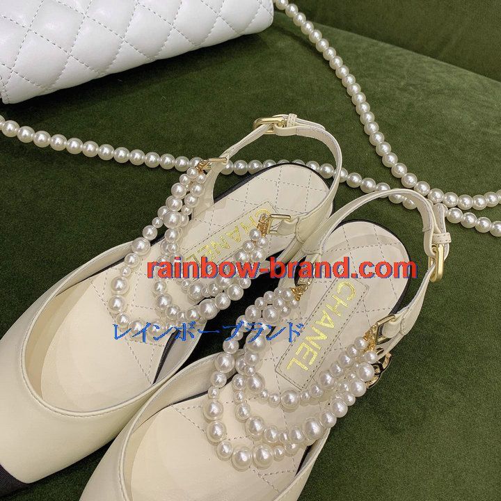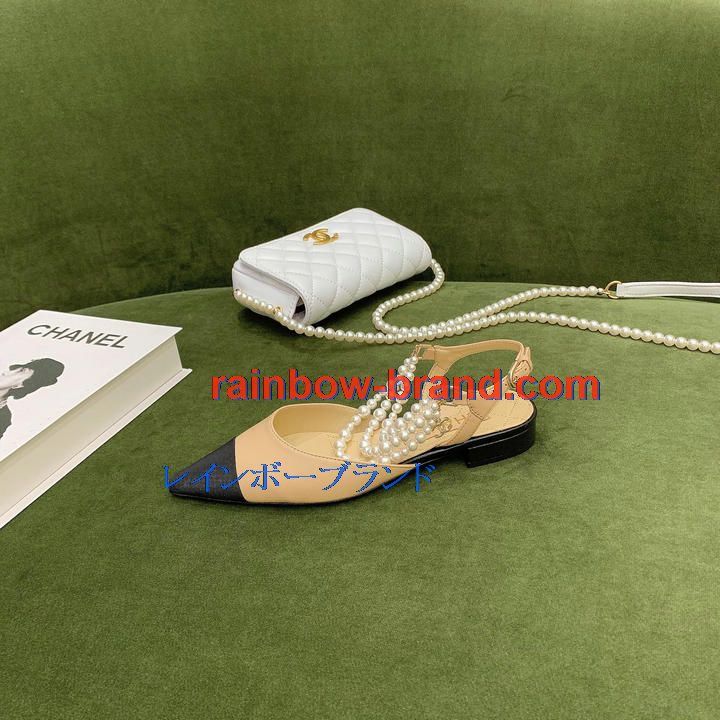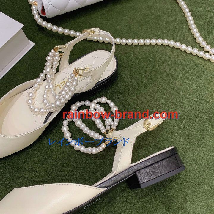 シャネル CHANEL 26-CHJ21079 2021年秋冬最新入荷 スリングバック サンダル パール付き フラットシューズ スライドサンダル カジュアルシューズ レディースシューズ