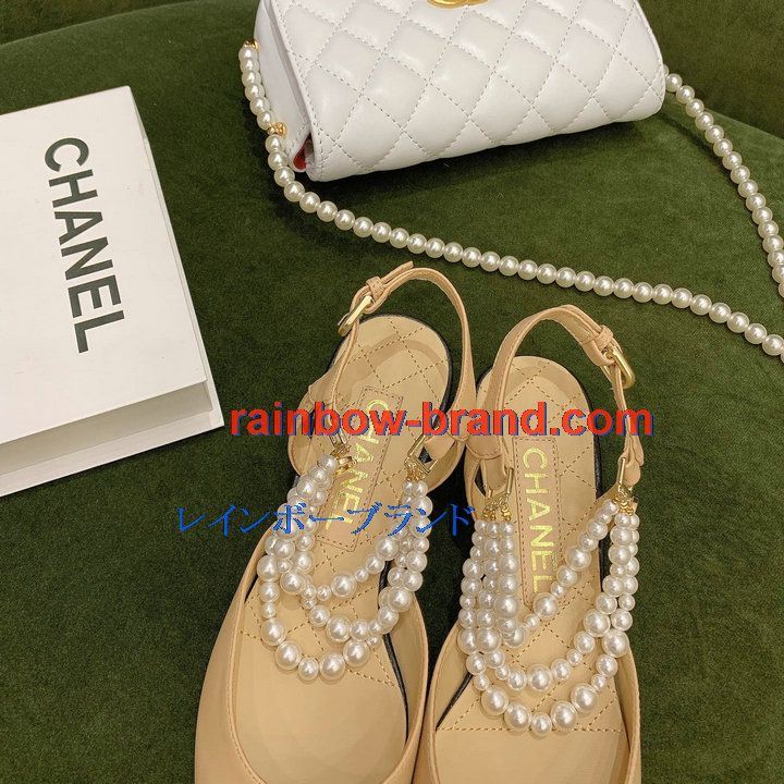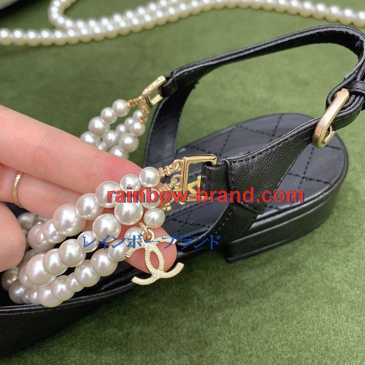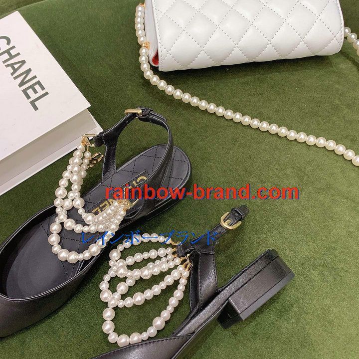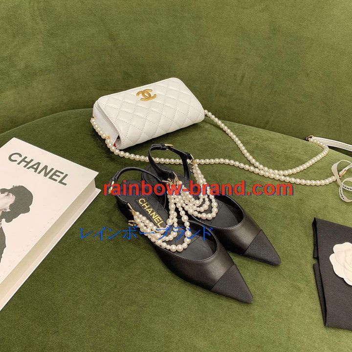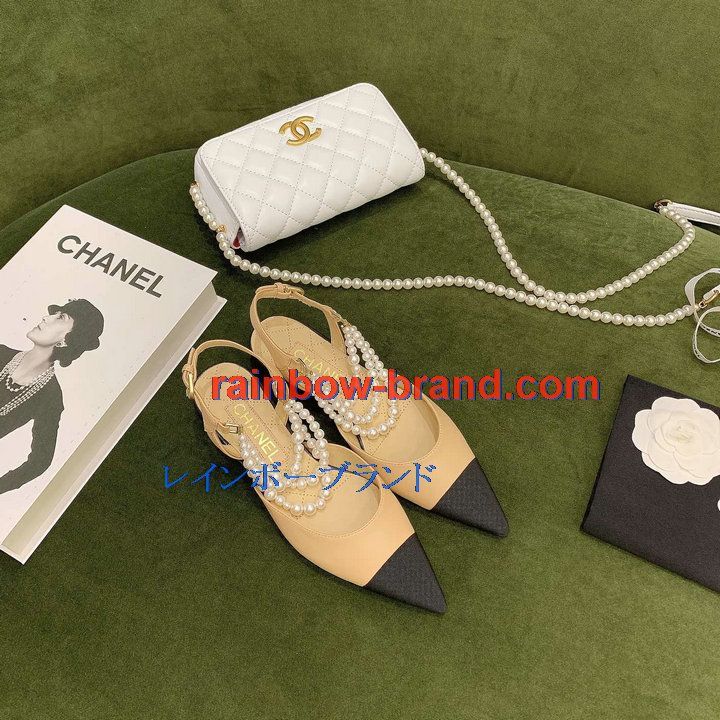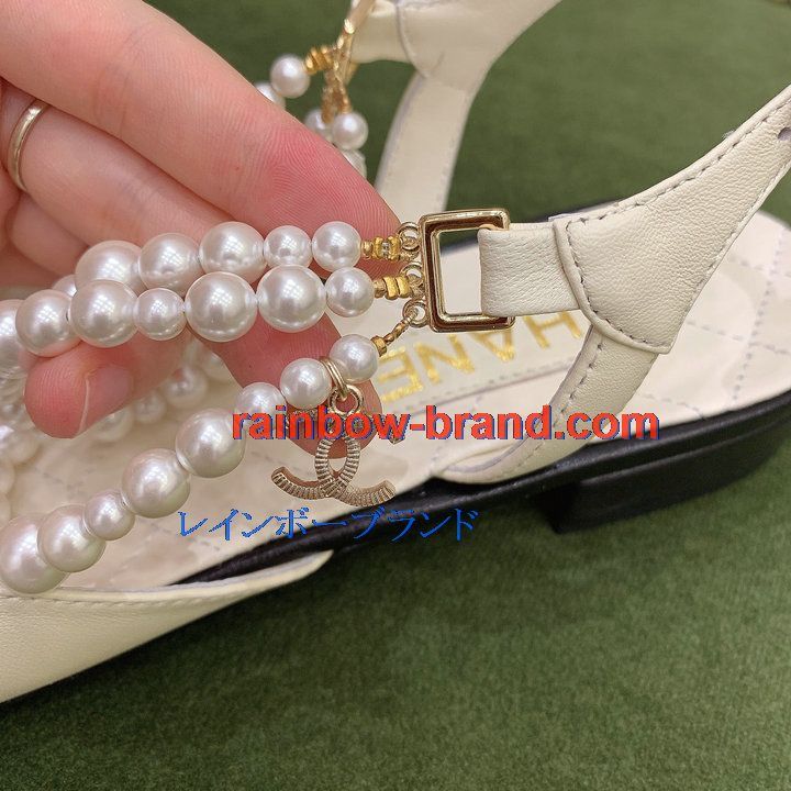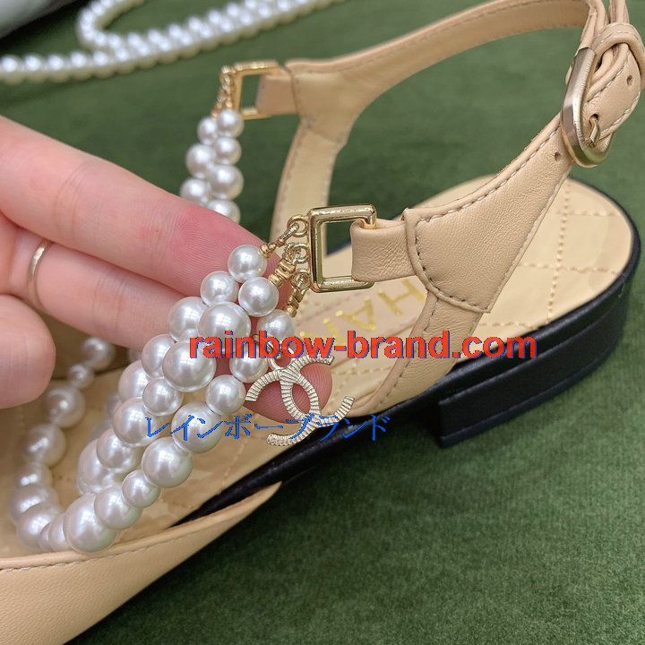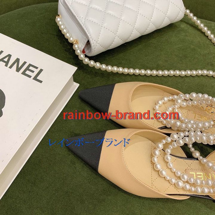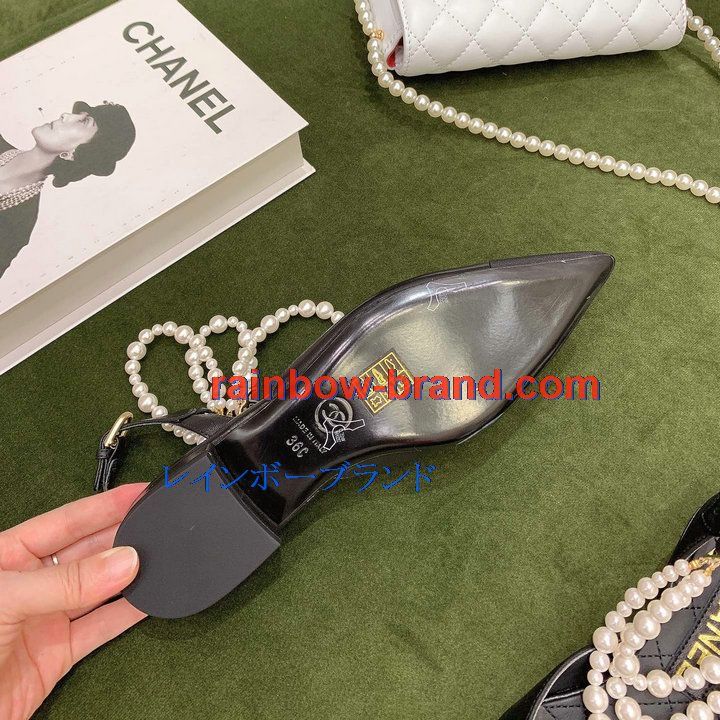 シャネル CHANEL 26-CHJ21079 2021年秋冬最新入荷 スリングバック サンダル パール付き フラットシューズ スライドサンダル カジュアルシューズ レディースシューズ