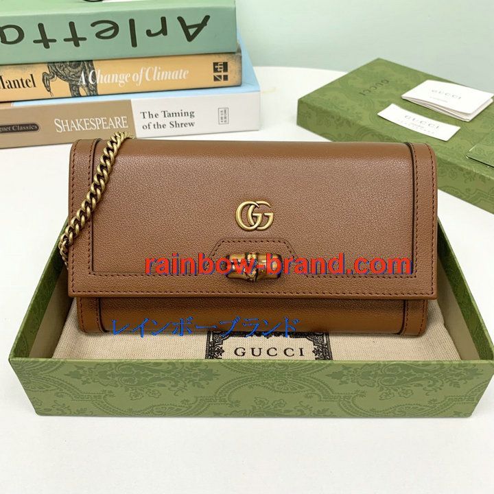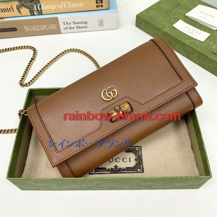 グッチ GUCCI 057-GG658243ZS 2021年最新入荷 バンブー付き チェーンウォレット 斜め掛け ショルダーバッグ クロスボディバッグ レディースかばん