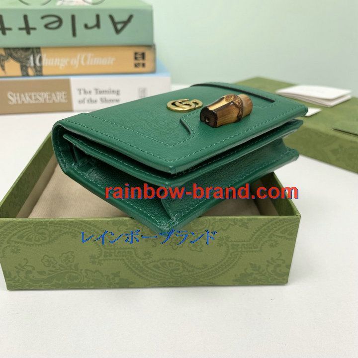 グッチ GUCCI 057-GG658244PGL 2021年最新入荷 バンブー付き カードケース ショートウォレット 二つ折り短財布 小銭入れ 名刺れ