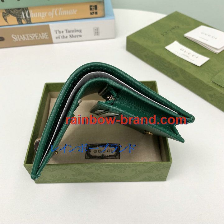 商品名称:グッチ GUCCI 057-GG658244PGL 2021年最新入荷 バンブー付き カードケース ショートウォレット 二つ折り短財布 小銭入れ 名刺れ