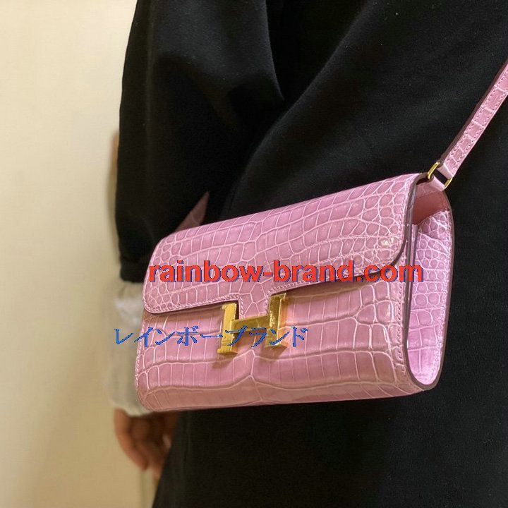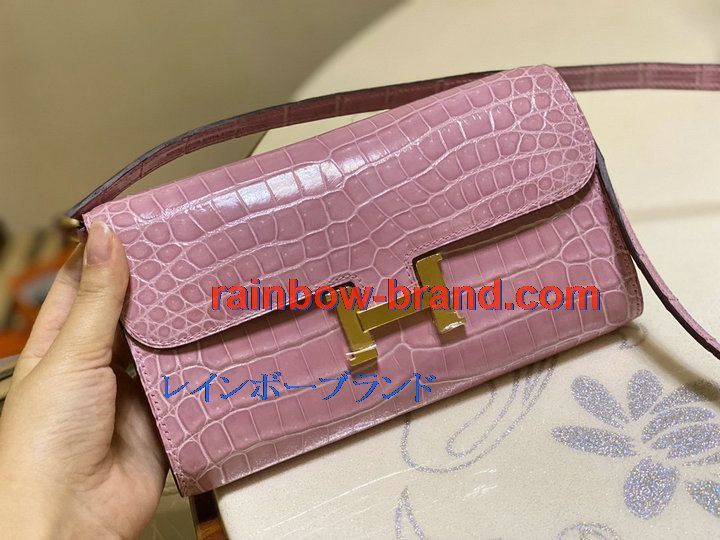 エルメス HERMES 063-H709EPJQF 2021年最新入荷 コンスタンス ポケット 斜め掛け ショルダーバッグ ロングウォレット クロスボディバッグ レディースかばん クロコ革