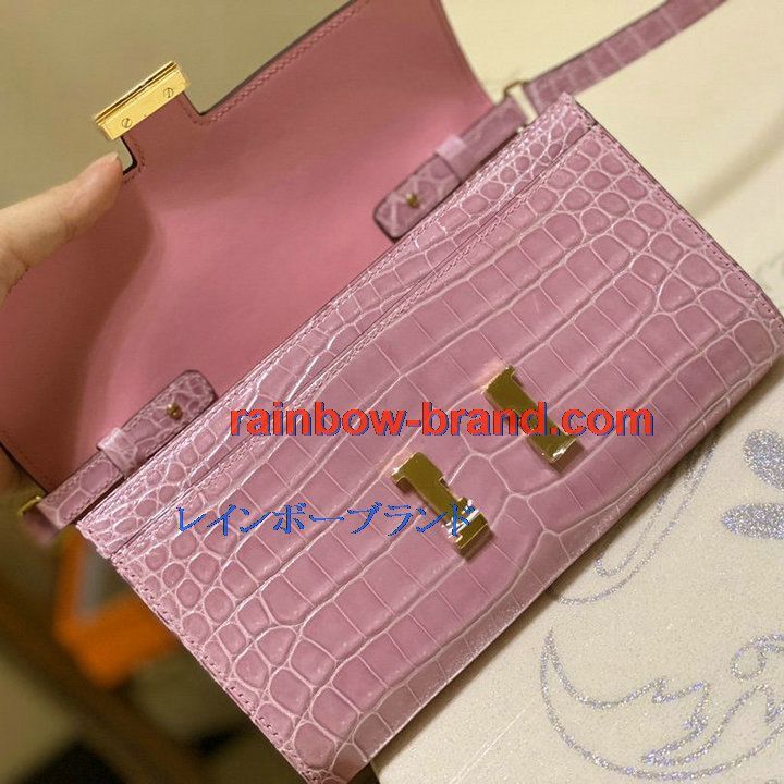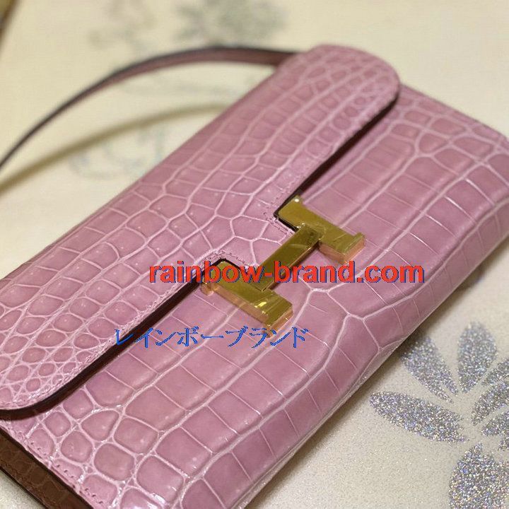 全商品を表示する:エルメス HERMES 063-H709EPJQF 2021年最新入荷 コンスタンス ポケット 斜め掛け ショルダーバッグ ロングウォレット クロスボディバッグ レディースかばん クロコ革