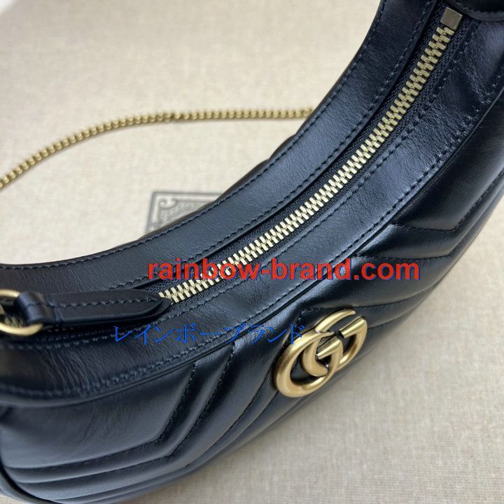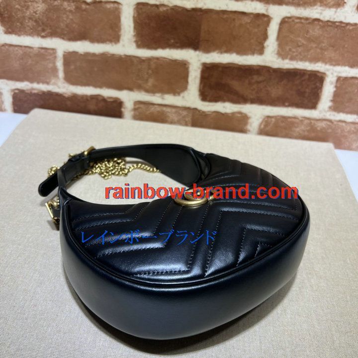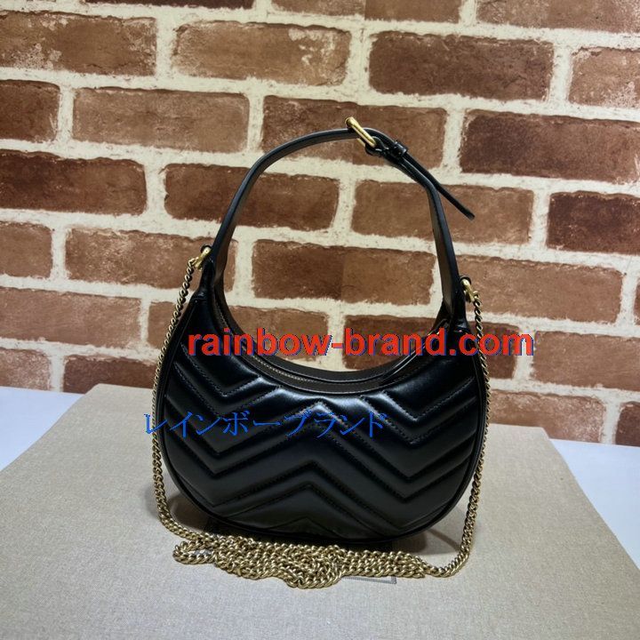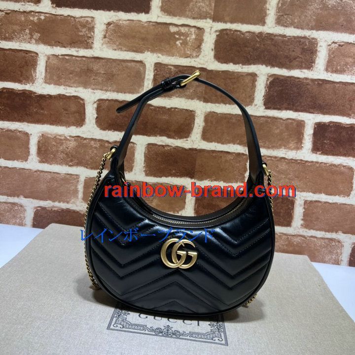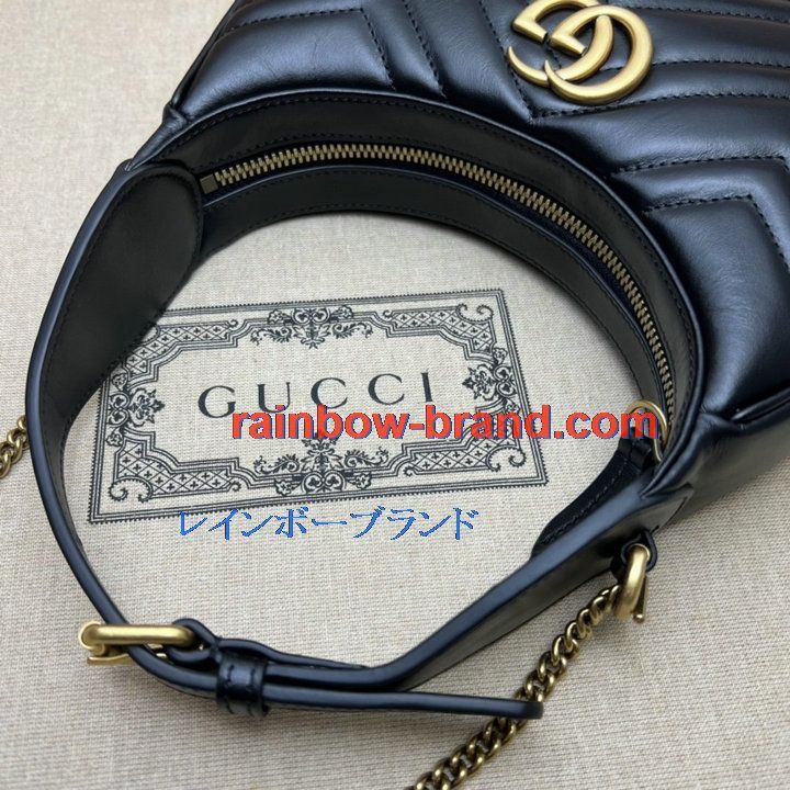 グッチ GUCCI 057-GG699514BK 2022年最新作 GGマーモント ハーフムーンシェイプ ミニバッグ ホーボーバッグ 斜め掛け チェーンバッグ クロスボディバッグ カーフレザー
