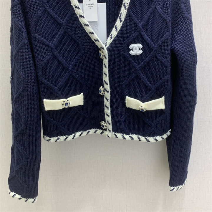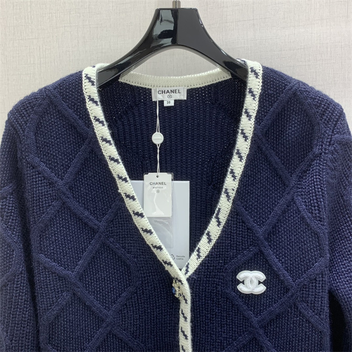 シャネル CHANEL 2025年新作 カーディガン ロングスリーブ ニット コートー Vネック ウール コットン レディース